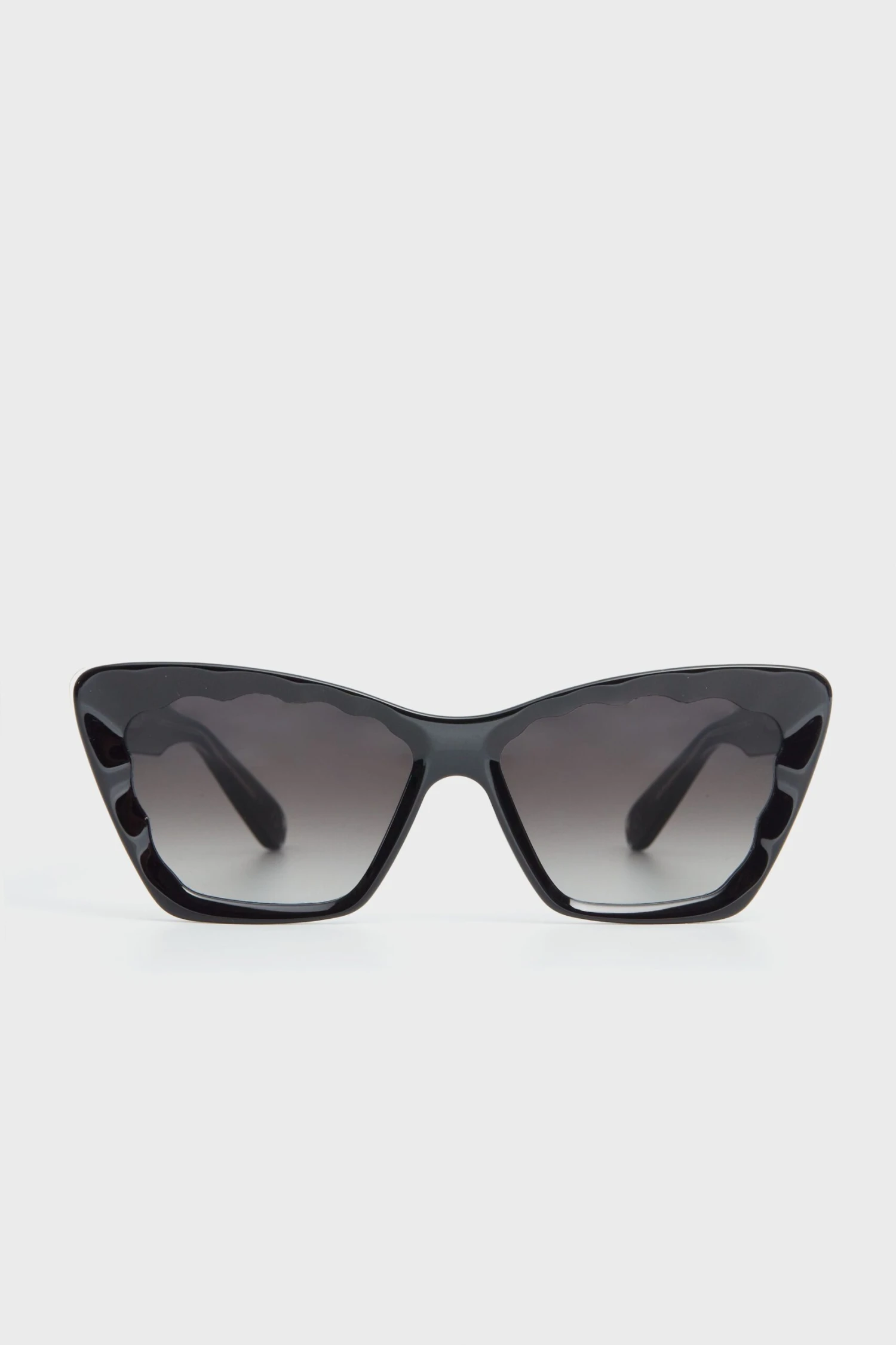 The epitome of eye-catching! Iconic like its namesake actress, the Black Brigette sunglasses reimagines a classic cat-eye silhouette with scalloped edges that give it out-there energy. Crafted with lightweight acetate, its larger-than-life personality elevates every look and you will be reaching for these sunnies all year long!