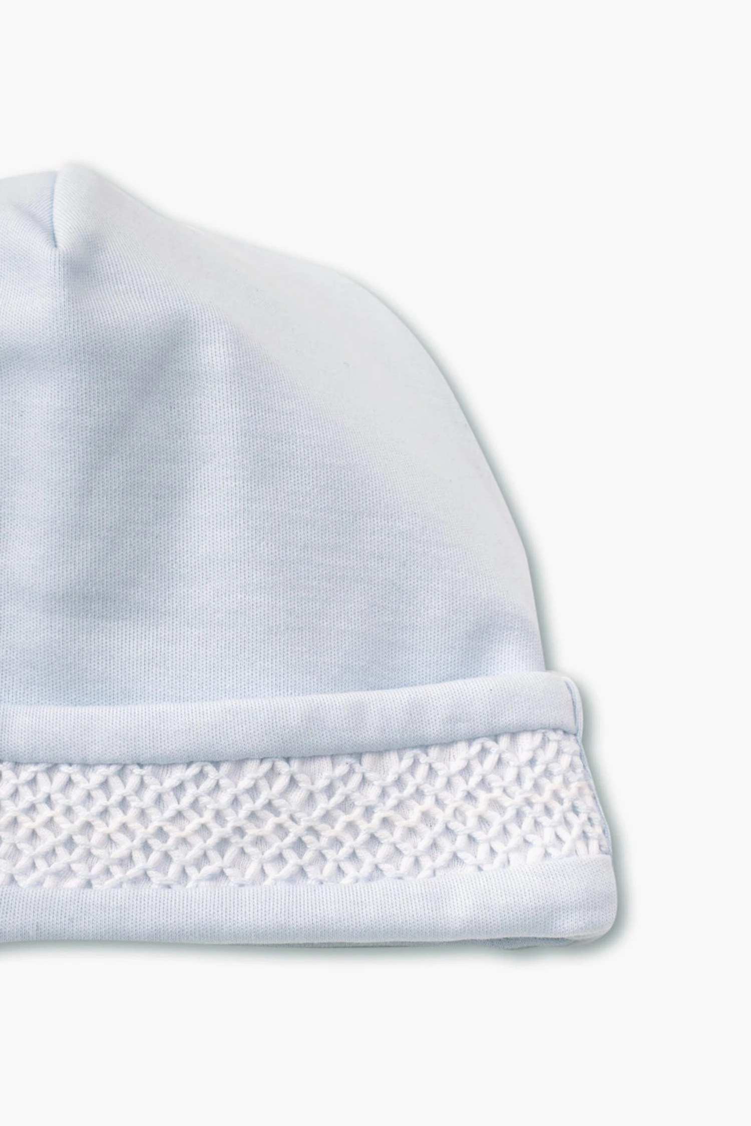 Keep your baby’s head warm and covered with the Blue Hat. Made from 100% Peruvian Pima cotton for softness and comfort, this timeless design features delicate hand smocked detailing for a soft touch. Put it on your little one for outdoor walks on chilly days!