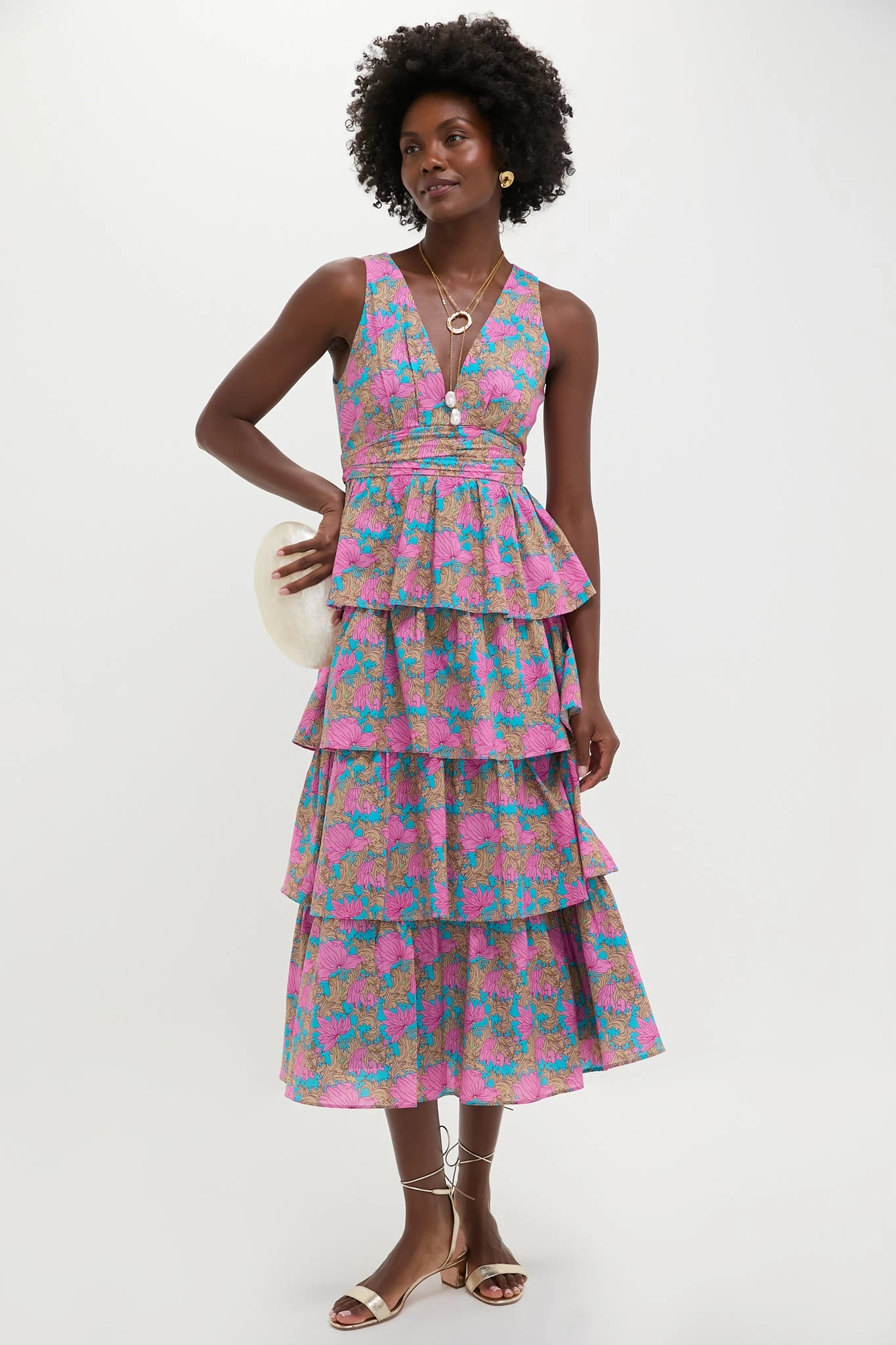 Flirty, floral and frills – what’s not to love about the Brilliant Pink Bonnie Dress! With its vibrant print, flattering V-neck, and breezy tiered midi skirt, it’s made for al-fresco soirees, weekend brunches, or dancing barefoot at garden parties. Just add strappy sandals and a woven clutch for an ensemble sure to turn heads.