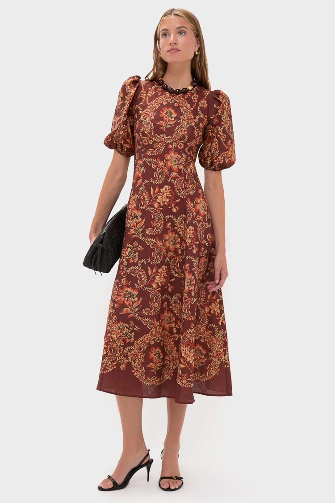 This elegant dress boasts puffed sleeves and an empire waist for a romantic look. Style with heels or boots for all of your events this season.