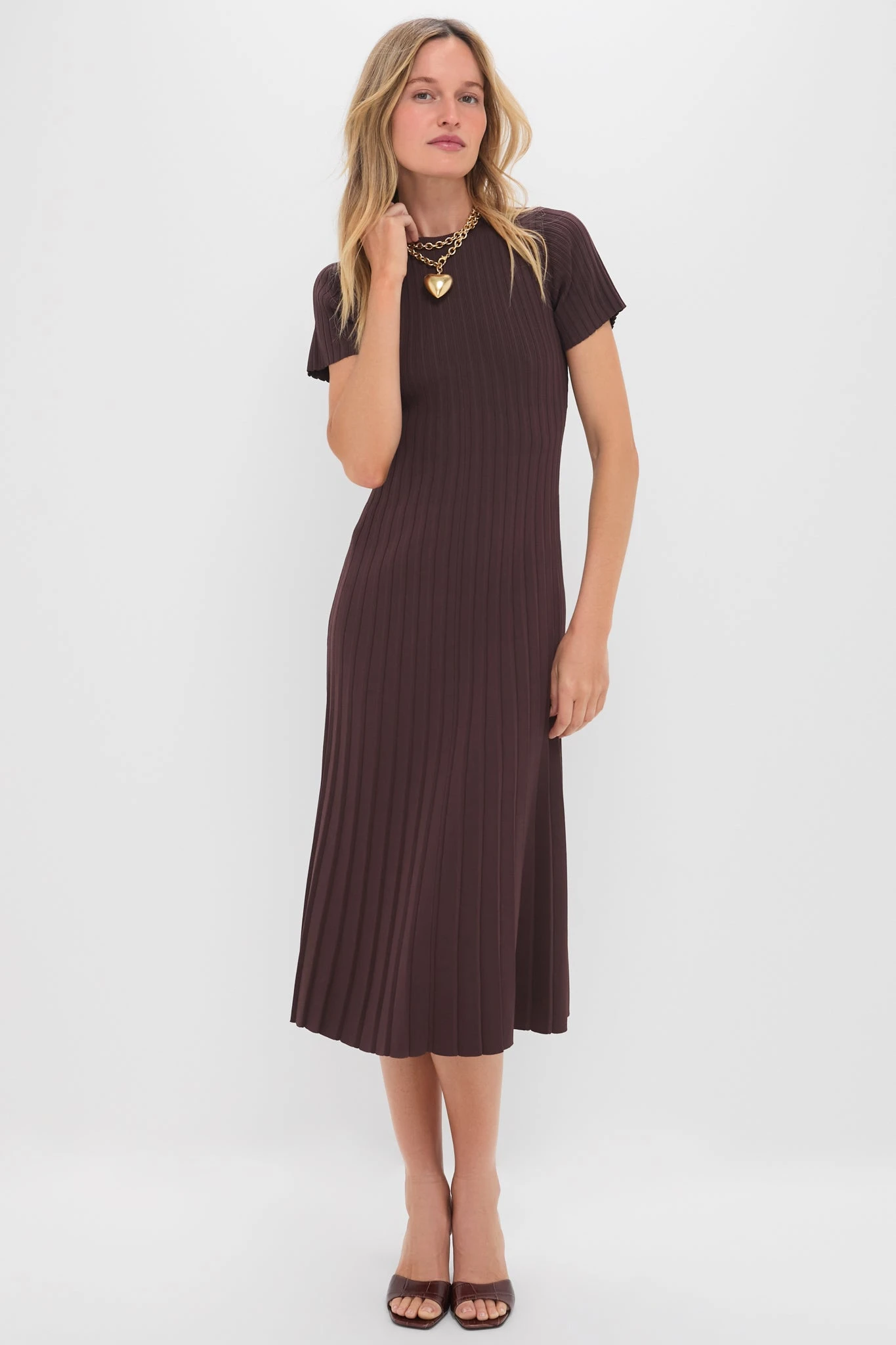 It doesn’t get better than this dress- a chic knit midi made from a soft, stretchy fabric in a rich chocolate colorway. Perfect for styling for every occasion this season, we are pairing with a chunky sweater and boots or with heels and a belt!