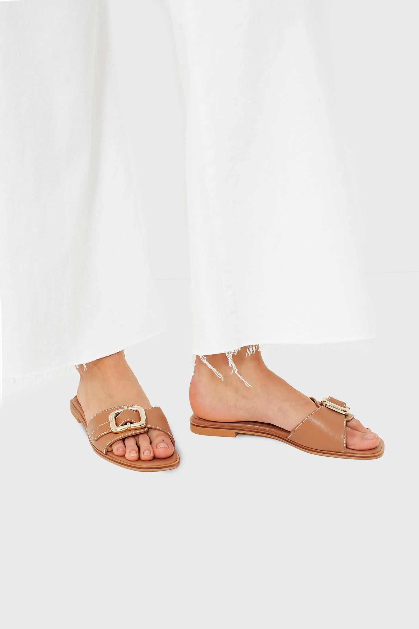 The Cognac Mimi Sandals are an elevated take on the classic slide. With a smooth leather body and luxe gold buckle toe strap, these shoes are anything but boring. Easy and comfortable for day long wear, we are pairing these with trousers and a button-down for the office, and switching into a maxi and gold jewelry for dinner and drinks.