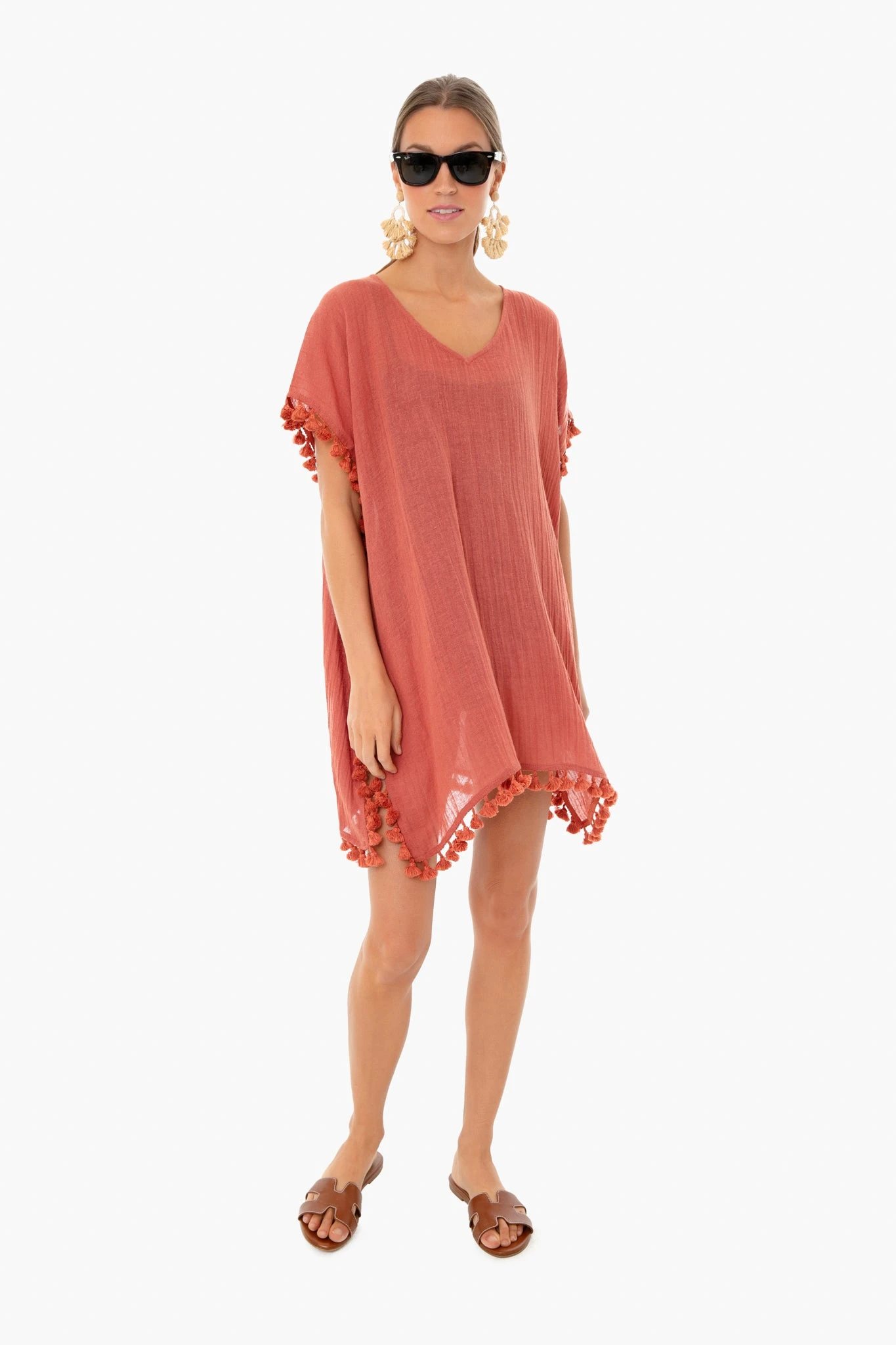 Easy, breezy and always ready for an adventure in the sun, The Katie Caftan is our go-to when picking a lightweight cover-up. Slightly sheer and detailed with pom-pom tassels, this v-neck dress is the perfect amount of chic and fun for an easy beach look.