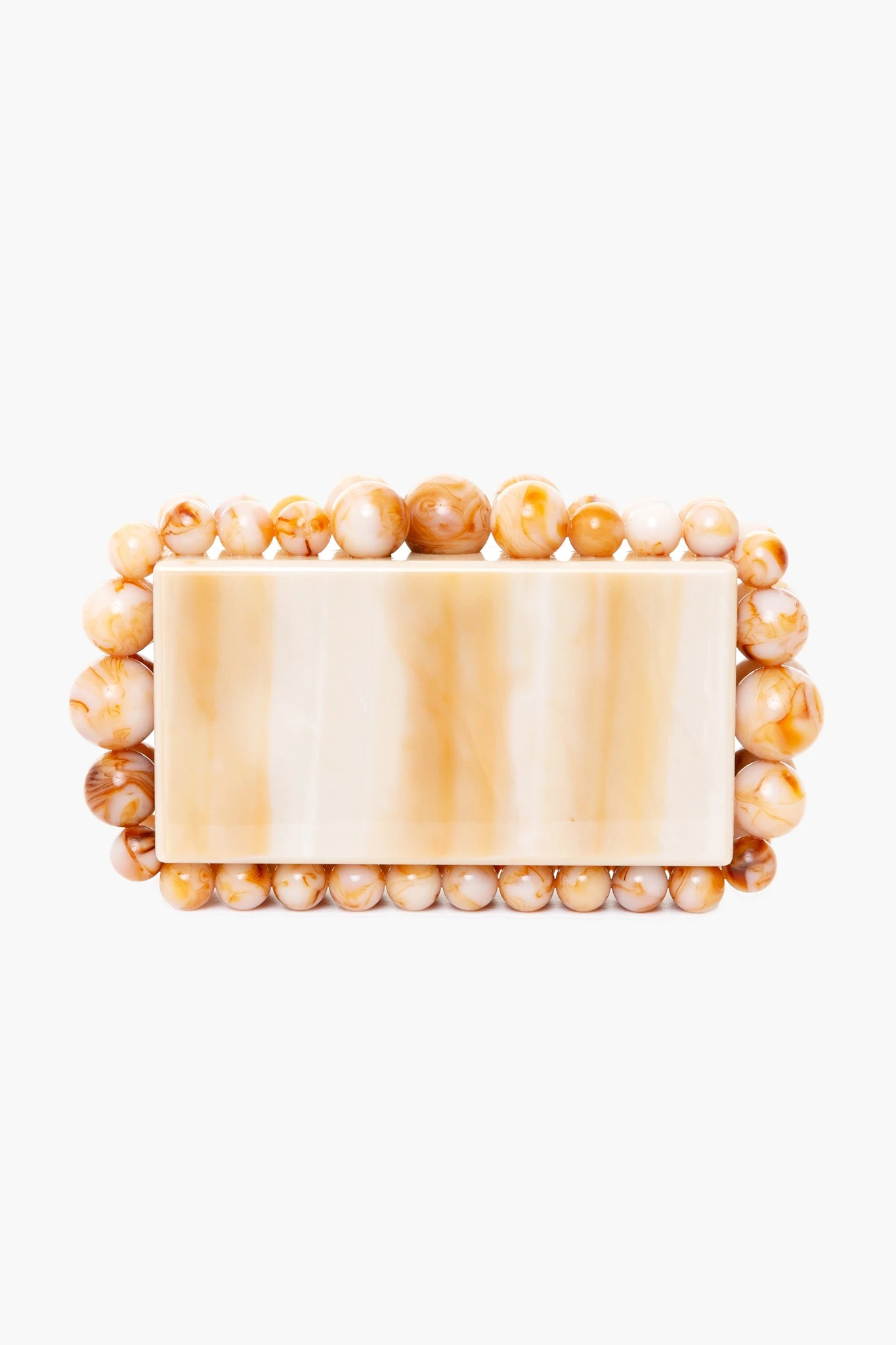 Featuring a faux mother of pearl façade, acrylic pearl beads around the edges, and gold Cult Gaia signature, this bag is a must-have. Pair with denim or a dress to add a little fun to your date night look!