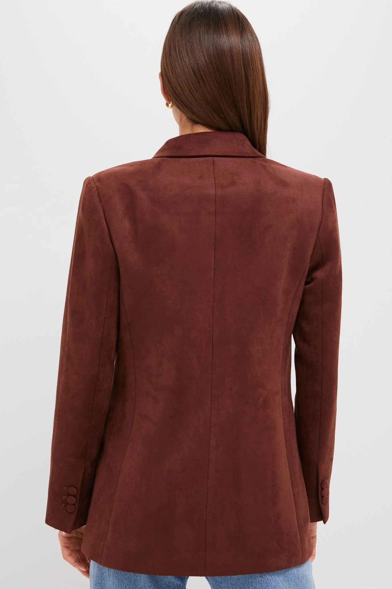 Crafted in buttery-soft vegan suede, the Deep Mocha Diana Blazer features a structured silhouette and tonal buttons for a sleek, elevated touch. Pair it with denim for casual polish or layer over a slip dress for a dinner-ready look.