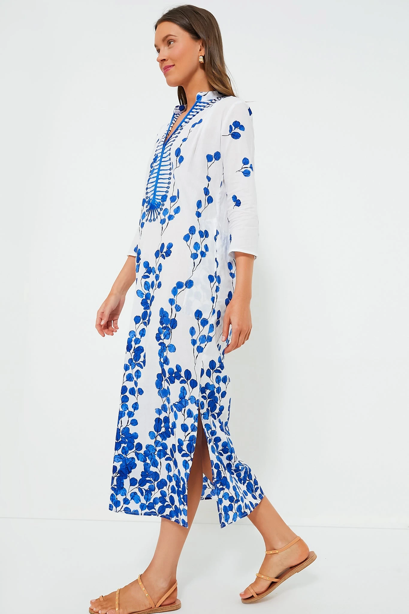 This Tuckernuck Exclusive Clorinda Kurta reminds us of fresh air and warm weather. This flattering and comfortable dress features a long silhouette, V-neckline, and three-quarter length sleeves. Bright and cheery, this is a must-have for your next getaway or days spent dreaming of one.