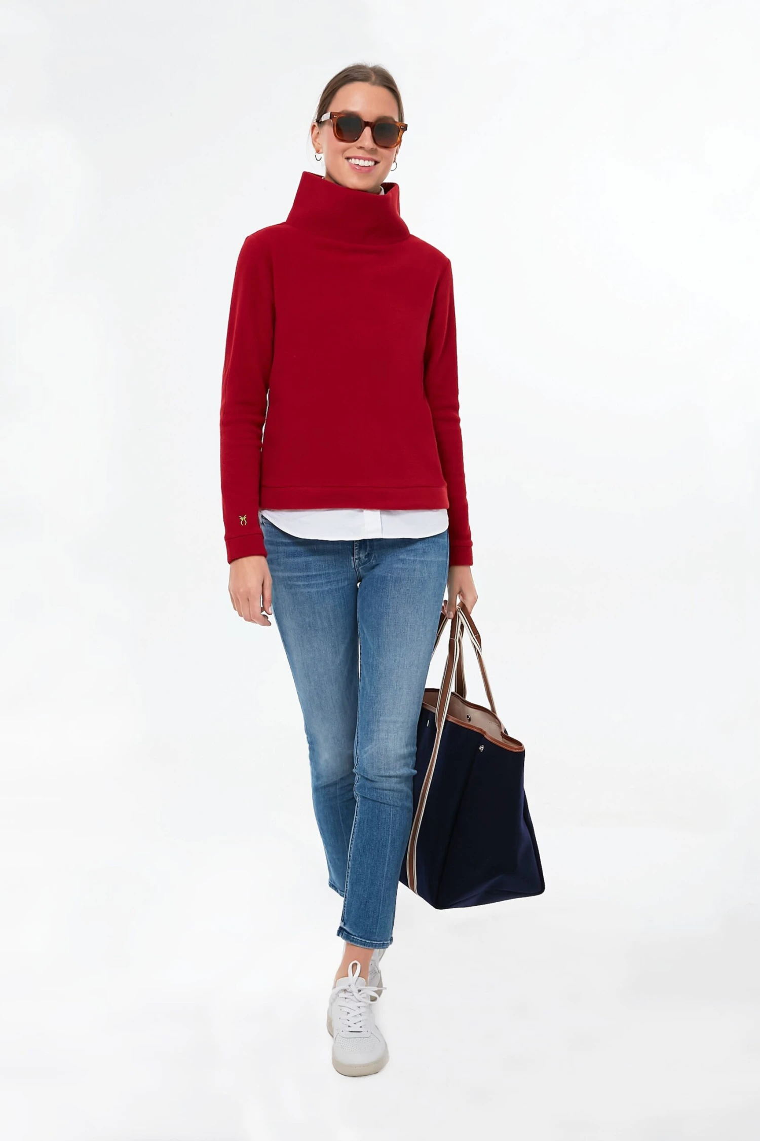 The Rhythmic Red Colorblock Park Slope hits just below the waist, and features a funnel neck, a banded detail, and a cozy fit. This style is made from a non-iron vello fleece and is perfect for keeping you warm during outdoor adventures this season. We love to wear this to sit by the window and watch the snow fall, or under a puffer jacket to brave the cold.