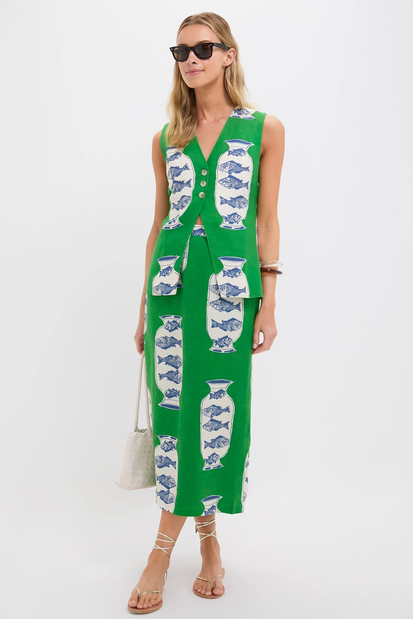 The Isla Skirt is fitted beautifully at the waist with a straight cut that strikes the perfect balance of tailored structure and feminine flair. Crafted in a linen-blend Herring Green print, it’s the kind of piece that elevates any outfit with minimal effort. Pair it with the matching Lachlyn Vest for a seamless, sophisticated look, or wear it on its own for a laid-back, elevated vibe.