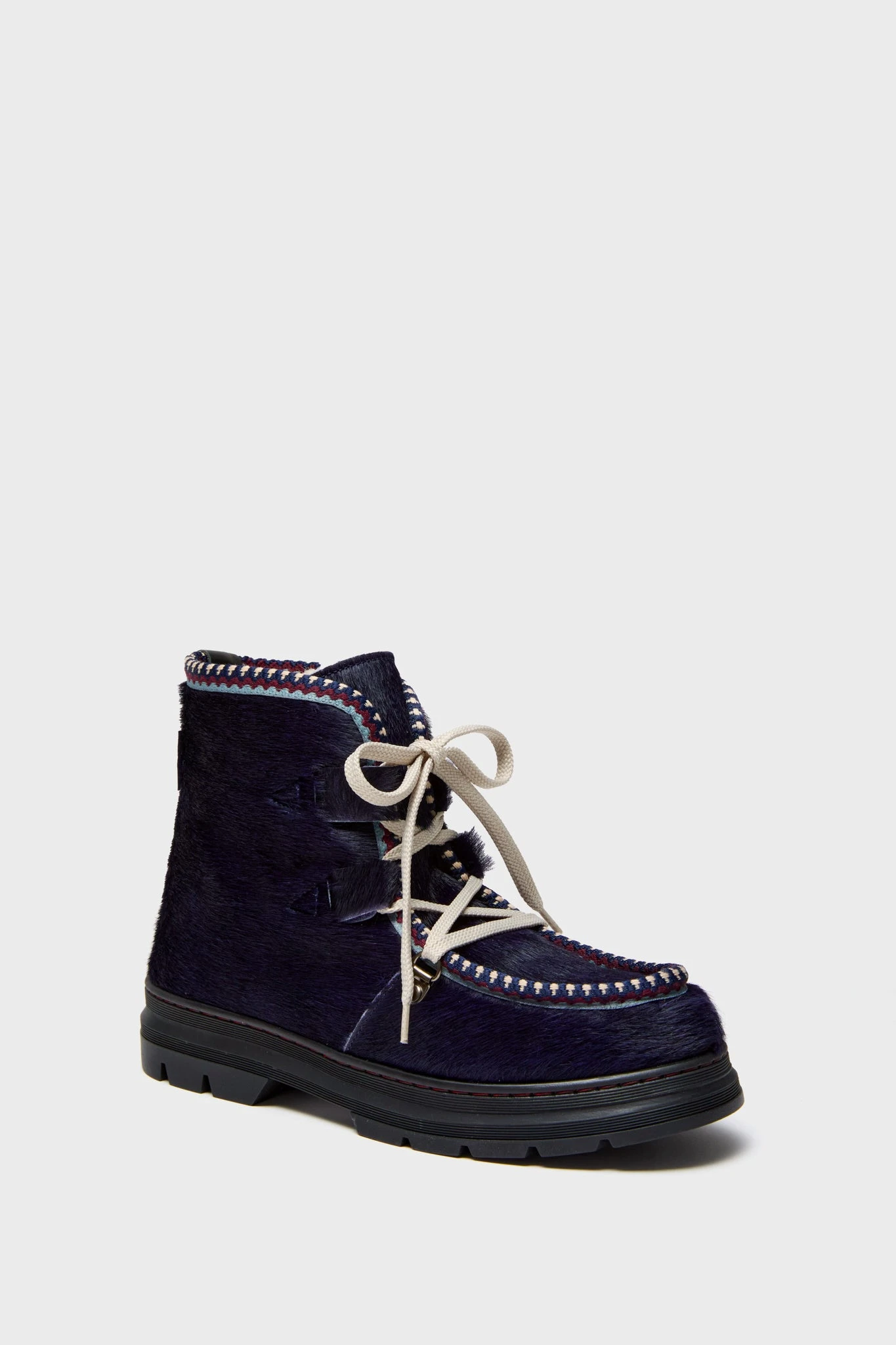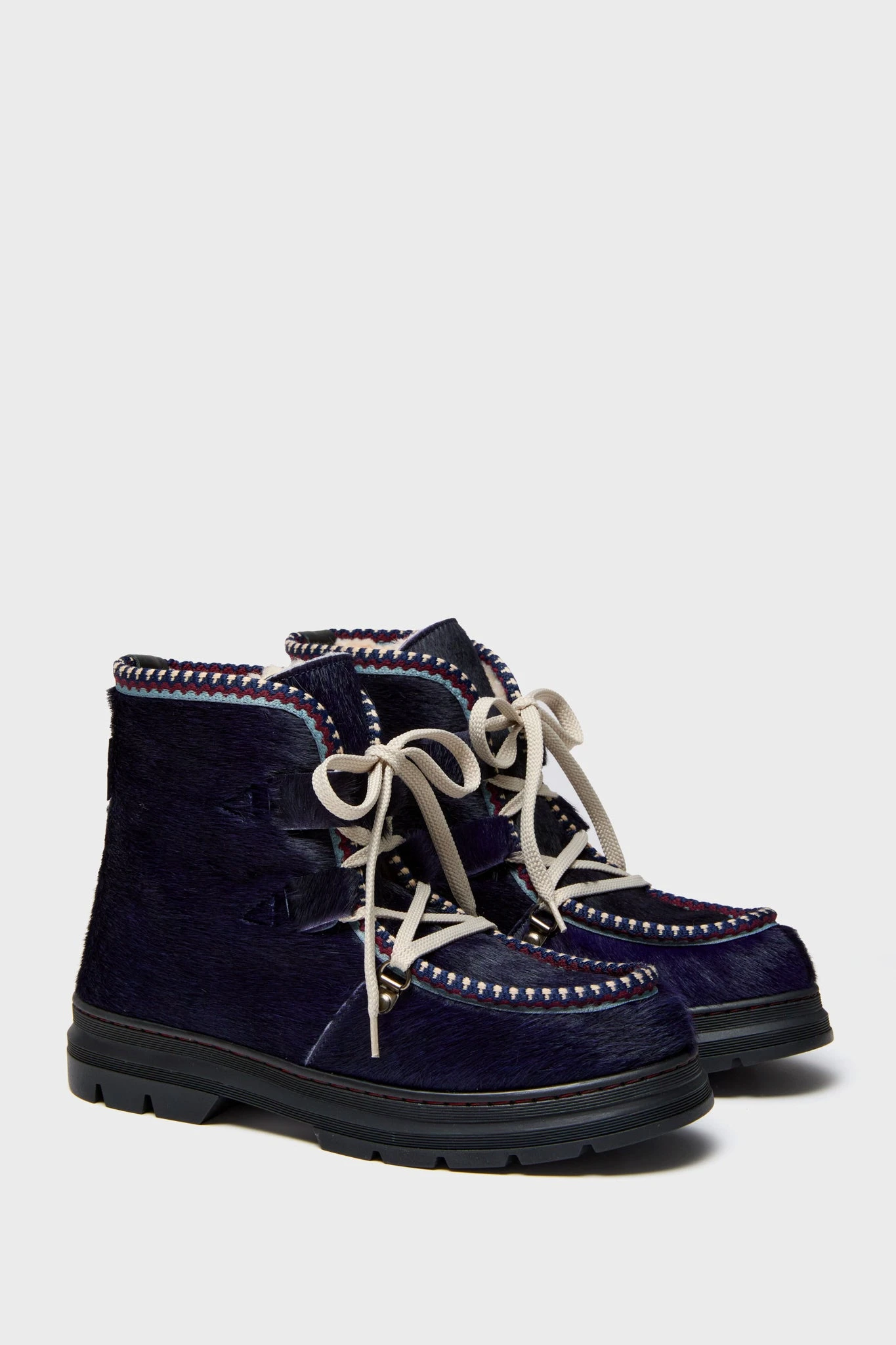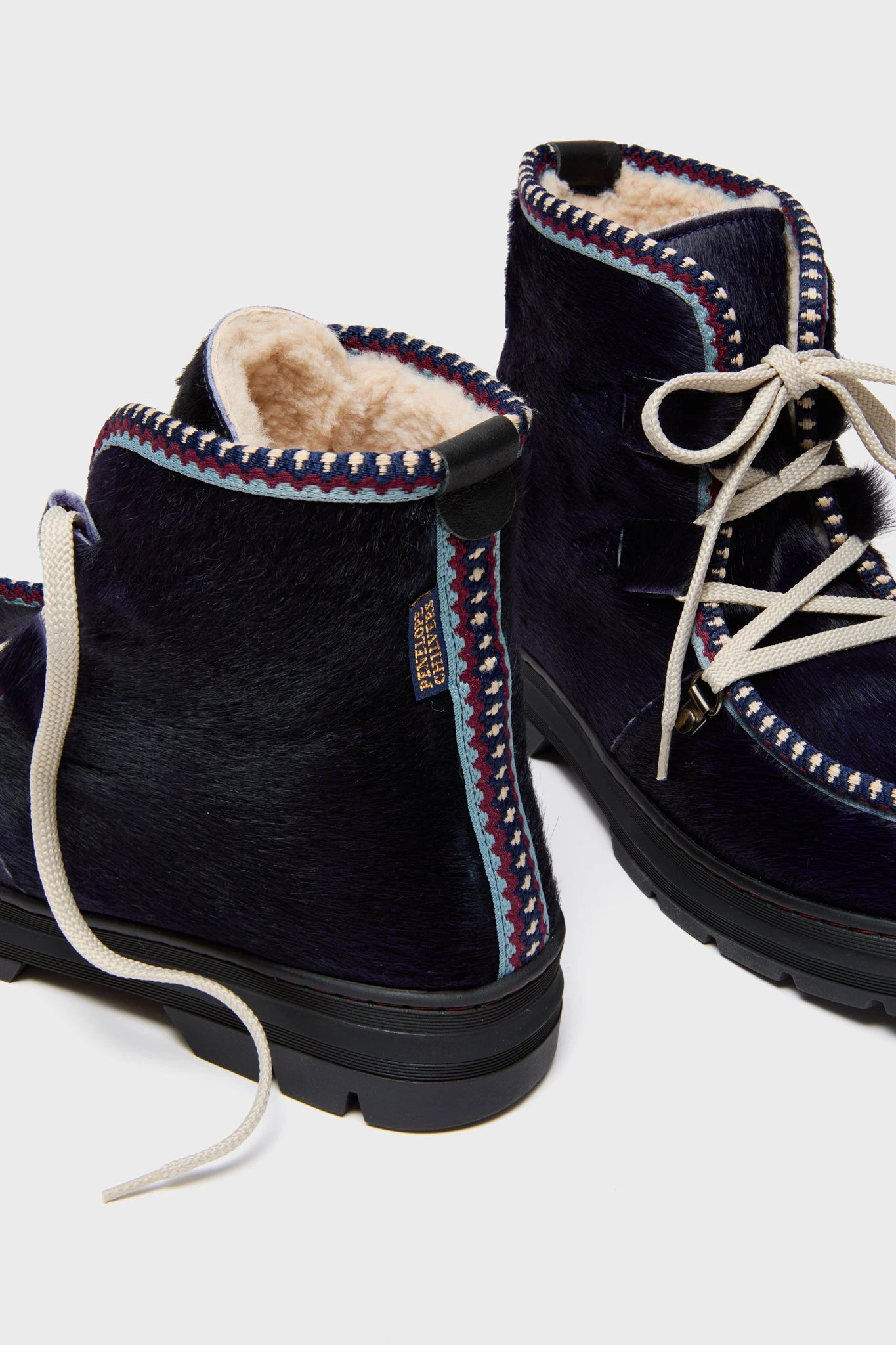 The Pony Boot is a luxurious snow boat for the coldest days, designed in a gloriously warm sheepskin and shearling with woven folk trim is distinctive and full of character. This unmistakeable fashionable and functional piece is a must add to your wardrobe – perfect for both dry land and on the slopes!
