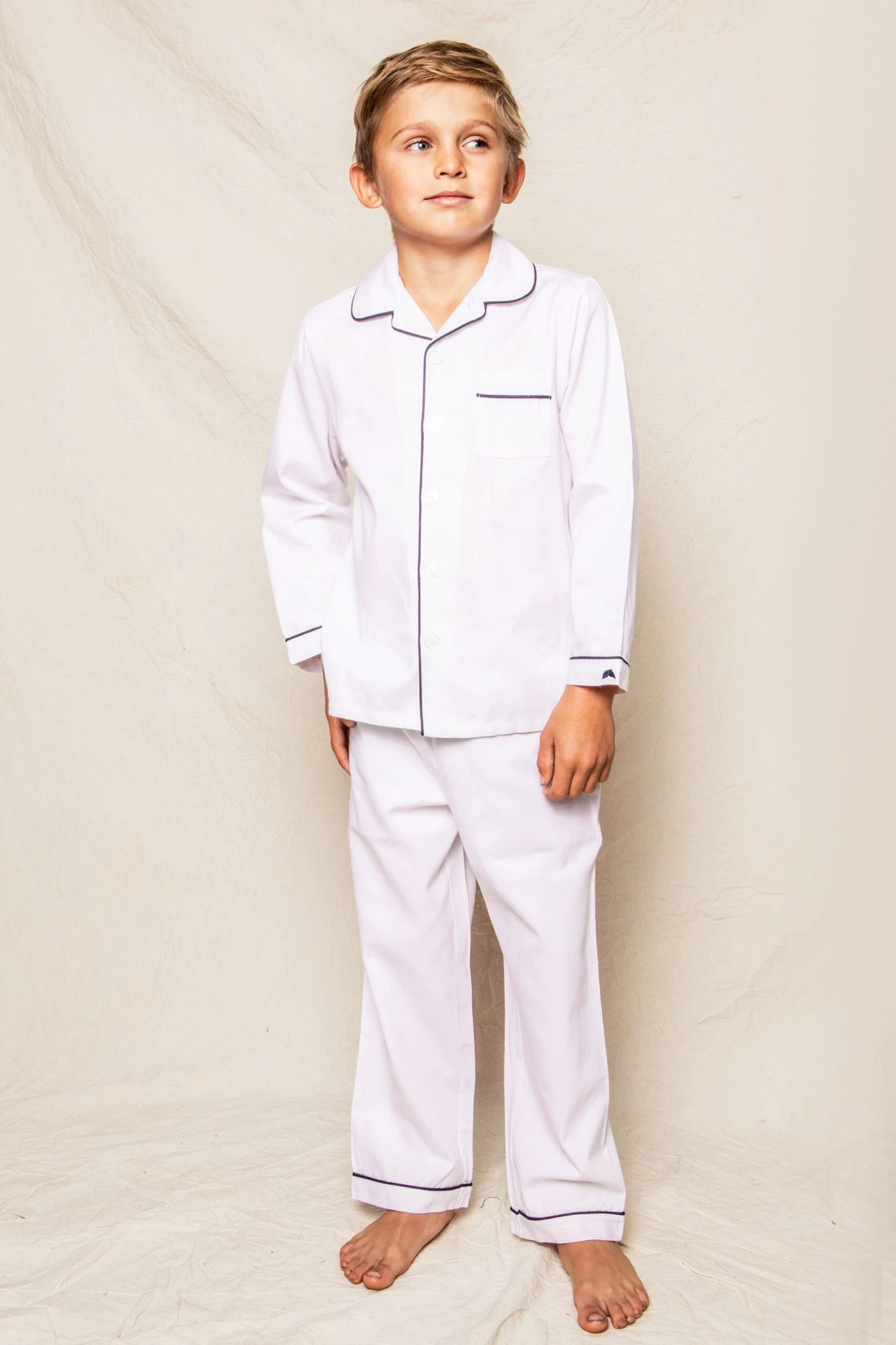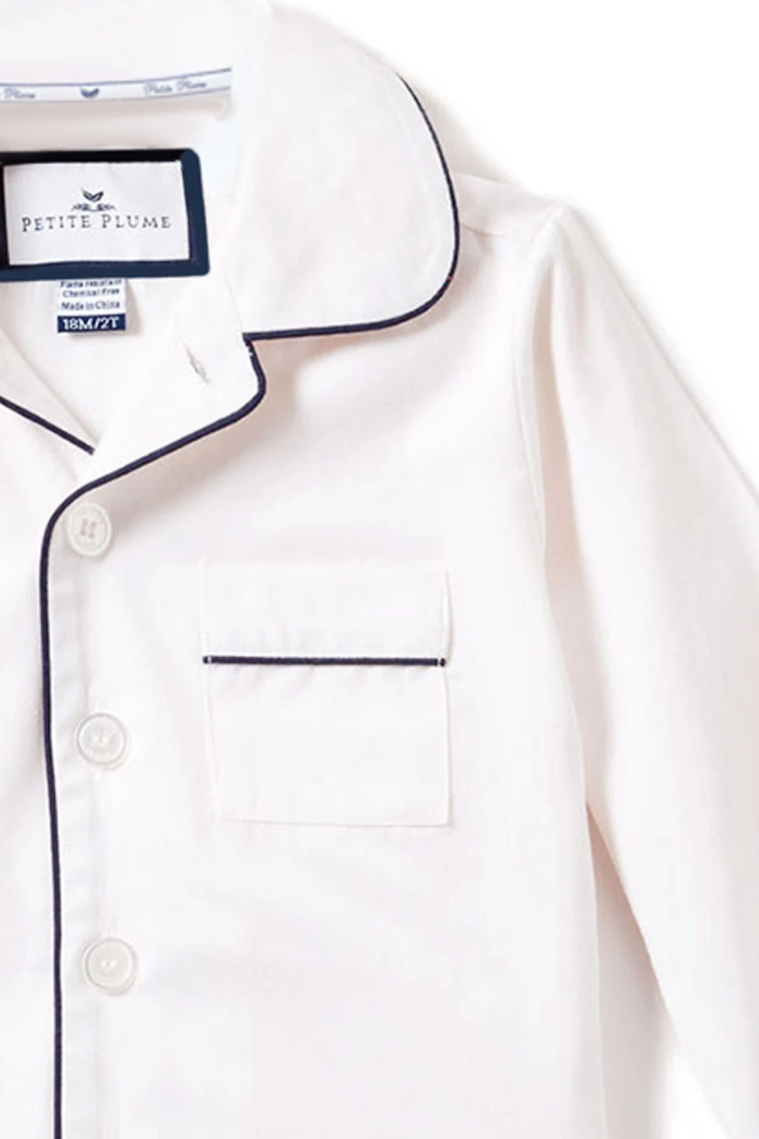 Snuggle up with your little one in the White Pajama Set with Navy Piping. This charming set features a crisp white fabric adorned with navy piping along the collar, cuffs, and pant hems, adding a touch of classic elegance. They are ideal for bedtime routines and sleepovers, ensuring your child sleeps in style and comfort.