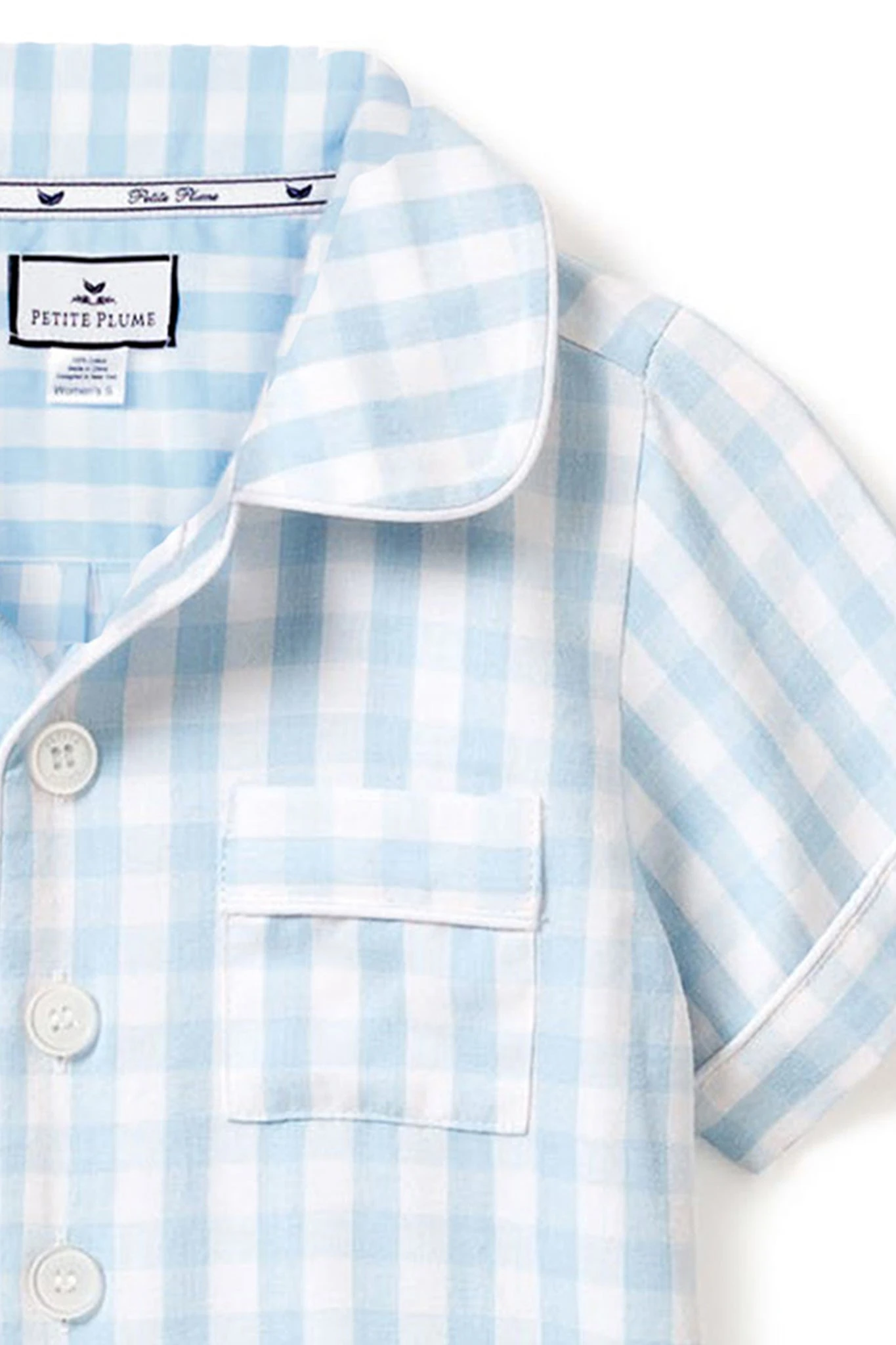 A classic essential, the Light Blue Gingham Short Set is the most darling sleepwear. In a timeless print and finished with pearl buttons, this set is made from the finest quality cotton and the fabric is brushed for added softness, getting cozier after each wash. Tuck your little one in with love and send them off to dreamland with these PJs!