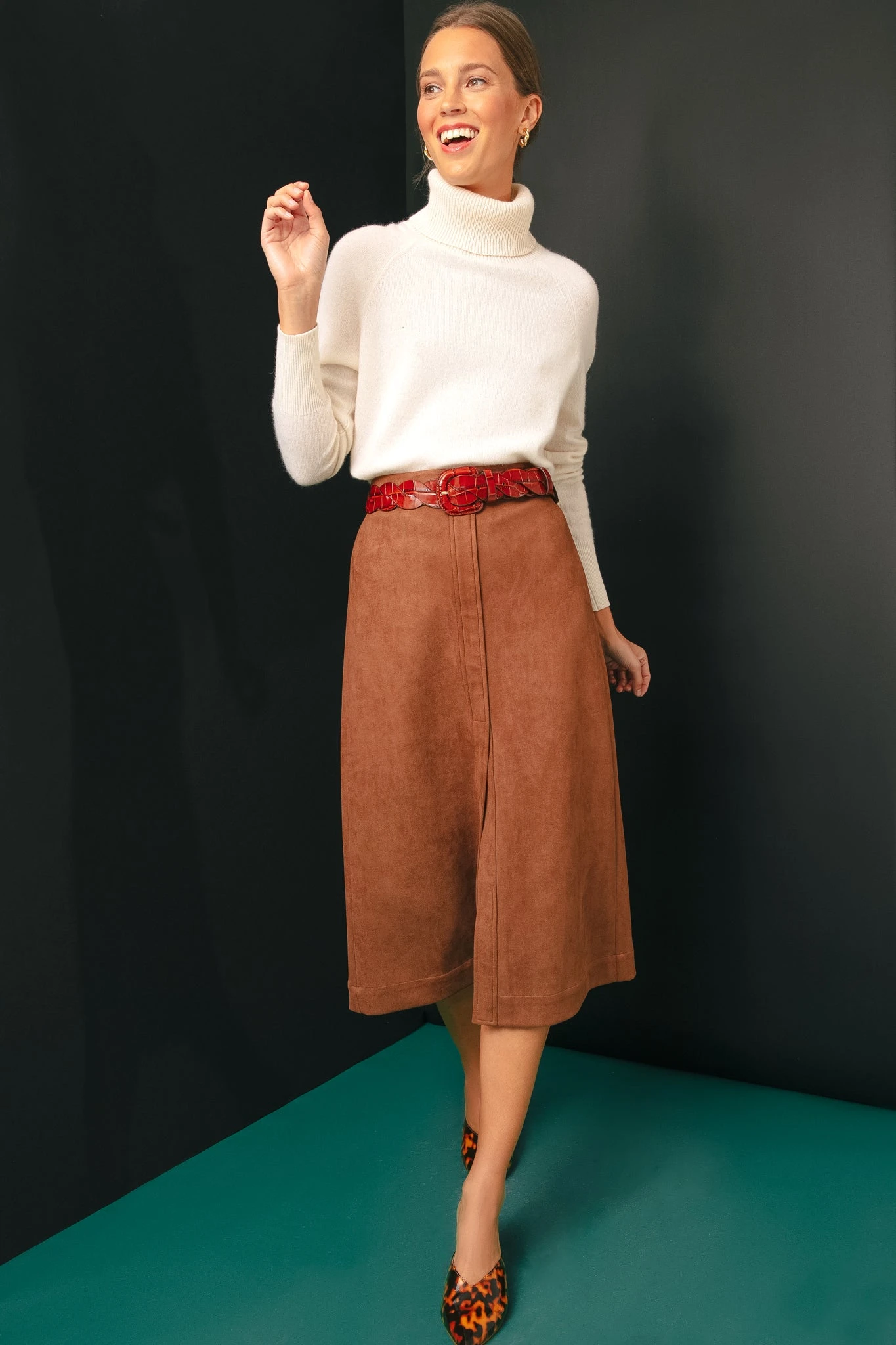 Loeffler Randall is a female-founded brand known for expertly designed shoes and accessories that have soul and a story to tell. The Chestnut Deidre Wavy Pieced Belt is scallop-woven in chestnut croc-embossed leather with a wrapped buckle. Pair with dresses and skirts to elevate your look!