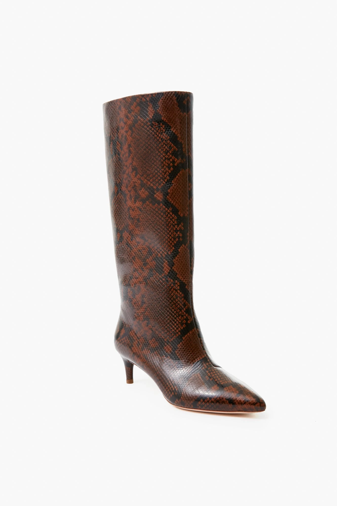 Ultra trendy and chic, the Gloria Boot features a pointed toe in snake-embossed leather. From dresses to chunky knits and sweaters, these will instantly become a wardrobe staple.