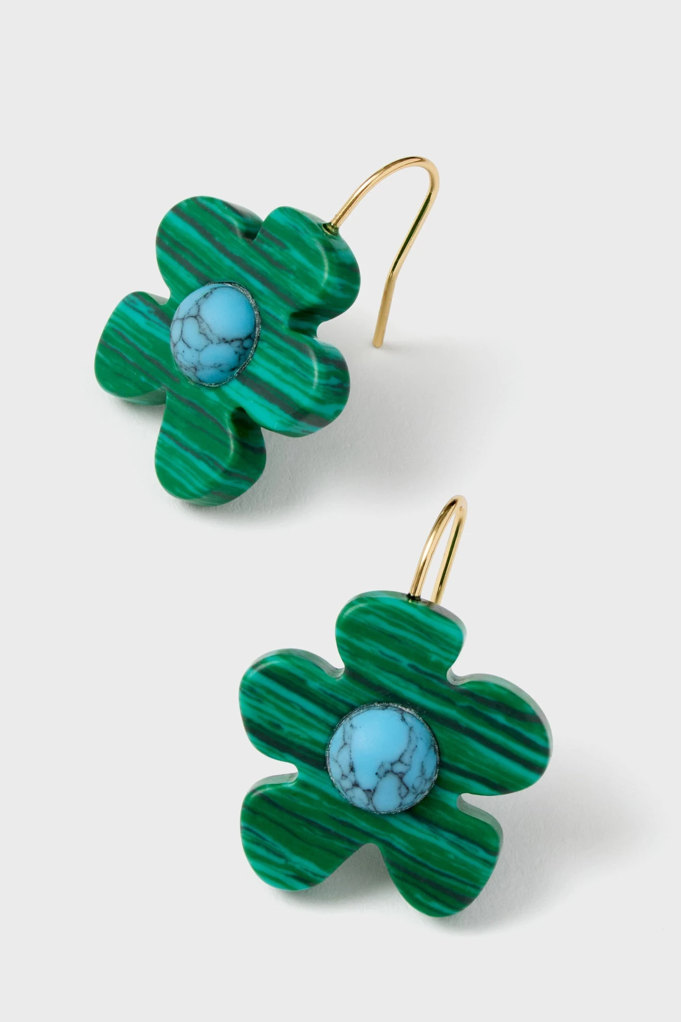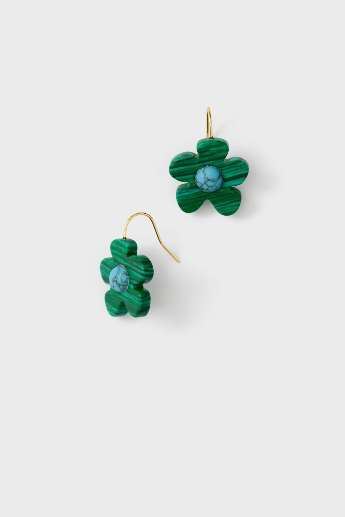 Add a pop of color to your everyday with the Malachite Heather Earrings. Featuring a chic floral design in a drop-style silhouette, these are suitable for everything from boardroom days to beachside nights — really any time you need an extra bit of shine.