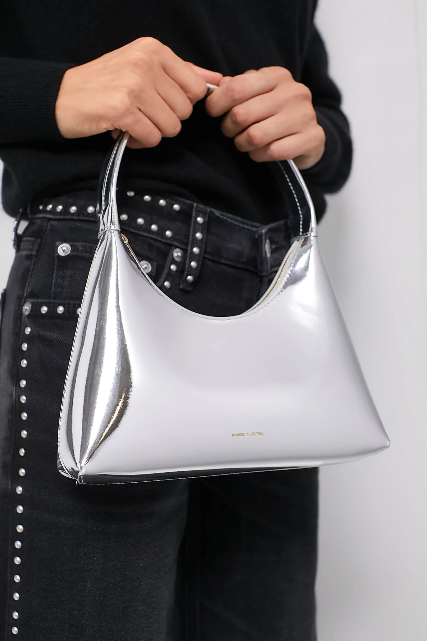The Silver Mini Candy Bag is defined by its graphic silhouette with a circular strap that allows for it to be worn over the shoulder or carried by hand. Finished with zip top closure and an interior pop of color, this mini will capture the spotlight wherever you go.