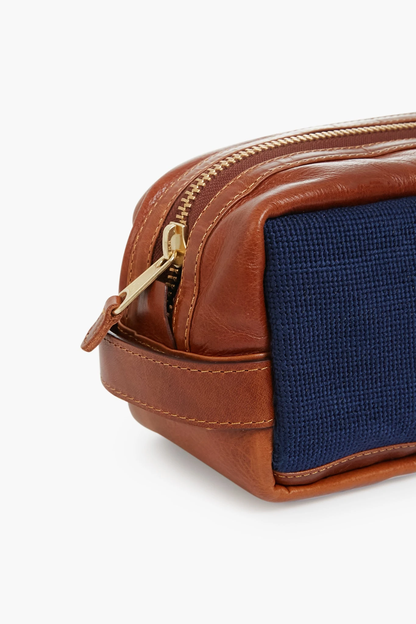 Americana all the way! The Navy American Flag Needlepoint Toiletry Bag was designed with function in mind. The interior boasts a double water repellent interior to keep messes to a minimum and is finished with a top zip and side handle for easy carry and access. Finished with full grain Italian leather and hand stitched needlepoint, this makes the perfect gift for the guy on the go or someone who needs a bit of organization in their life.