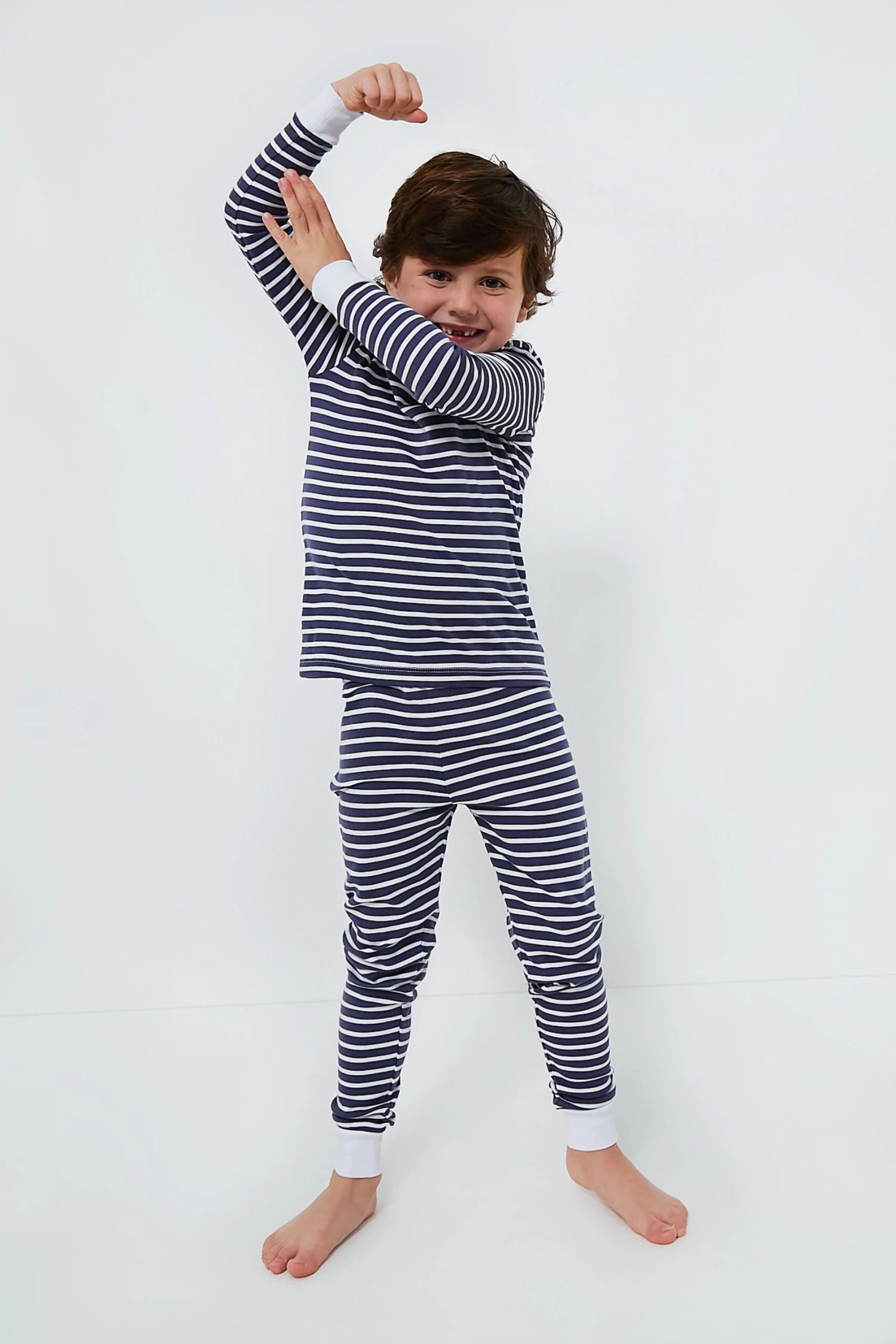 Snuggle up for sweet dreams in the super-soft Navy Stripe Pajamas. Made from luxurious Peruvian pima cotton, your little one is sure to get a good night’s sleep in this adorable matching set. Whether reading bedtime stories, rolling out of bed and making pancakes for breakfast, or getting ready for naptime, these are going to be your kiddo’s new favorite!
