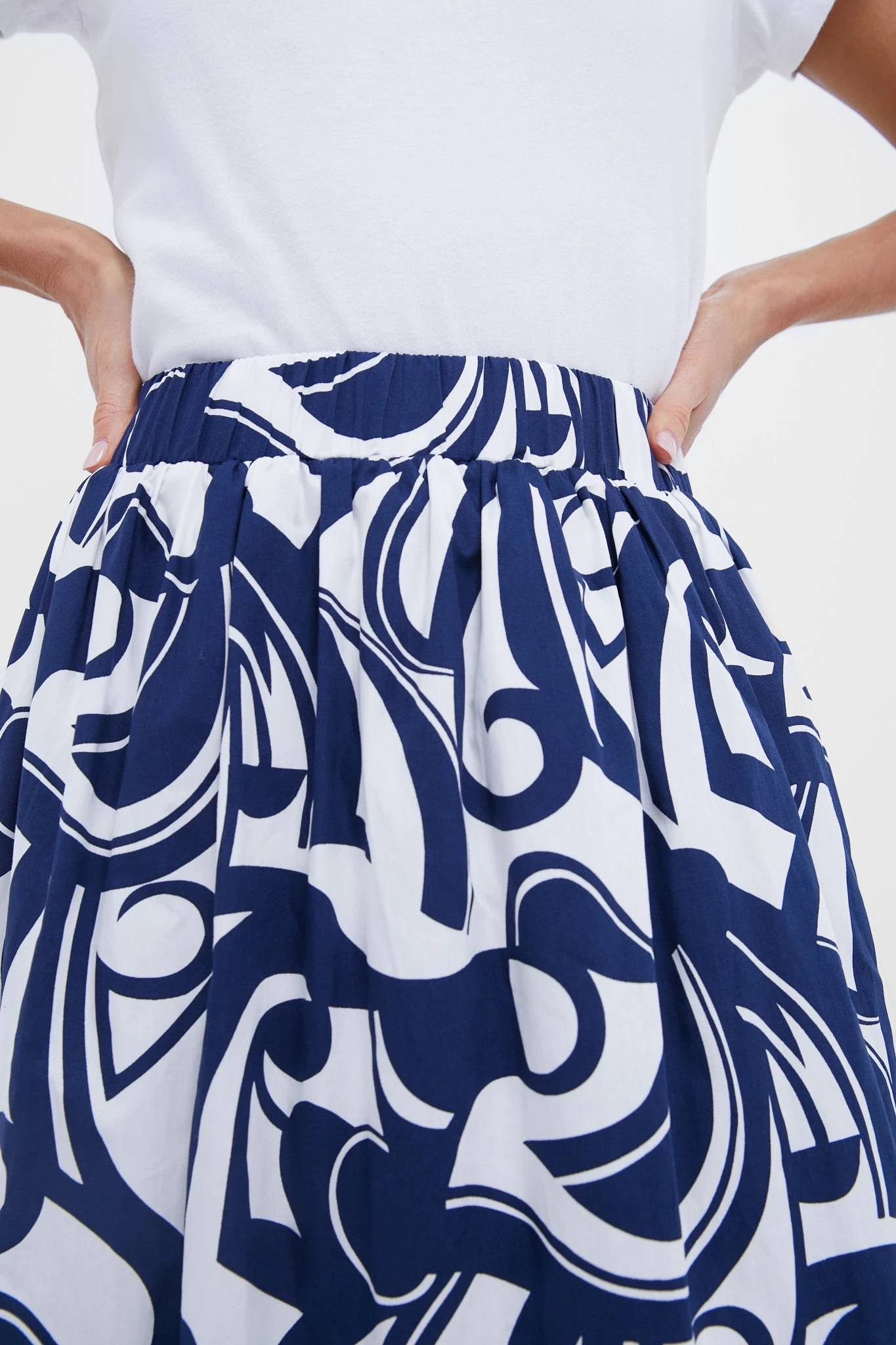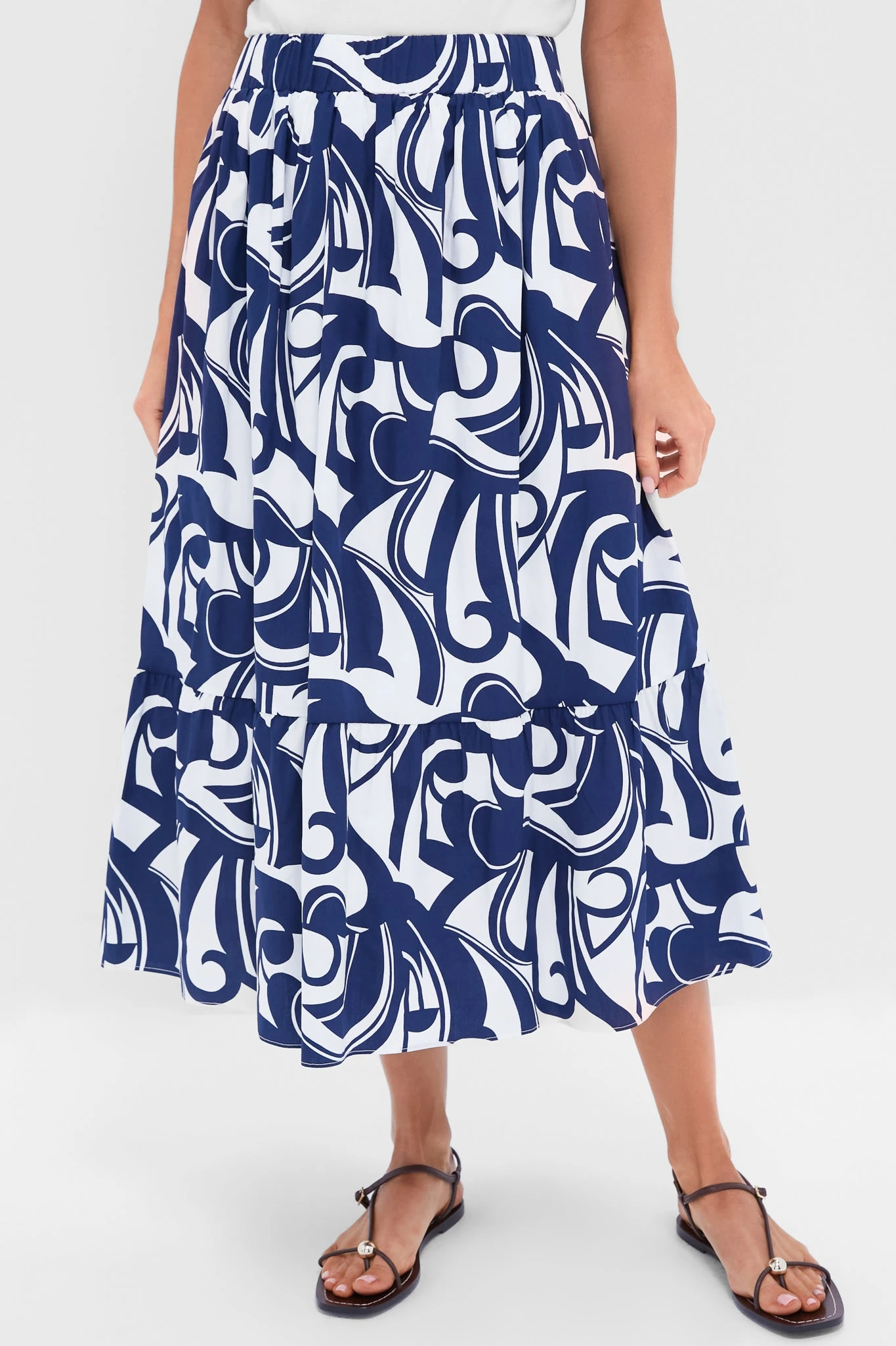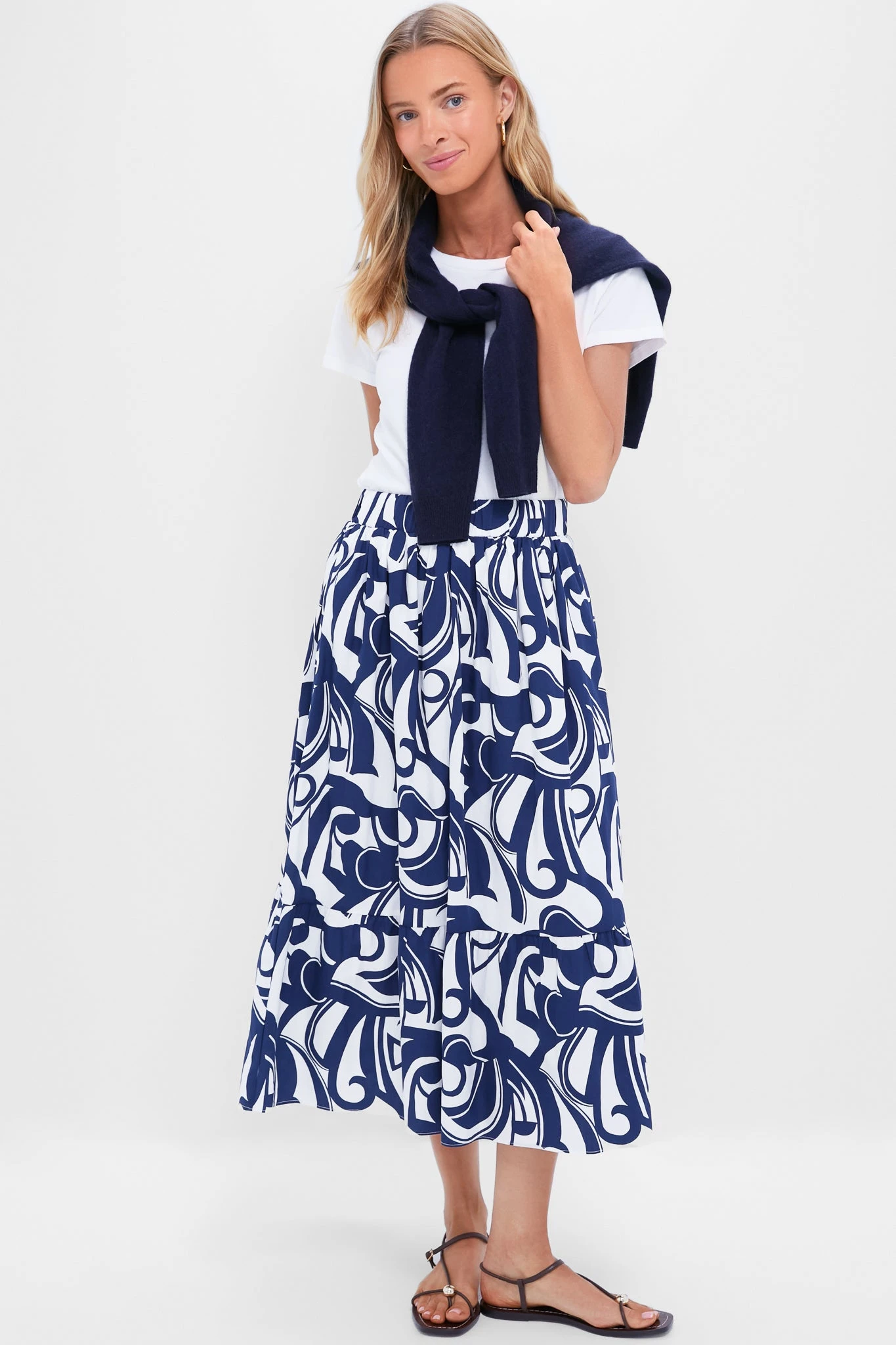 With an elastic waistband and tiered hem, the swirl print Willard skirt is an ideal option for warm days. Pair with a white tee or tank, sandals, and a tote, for effortless style.