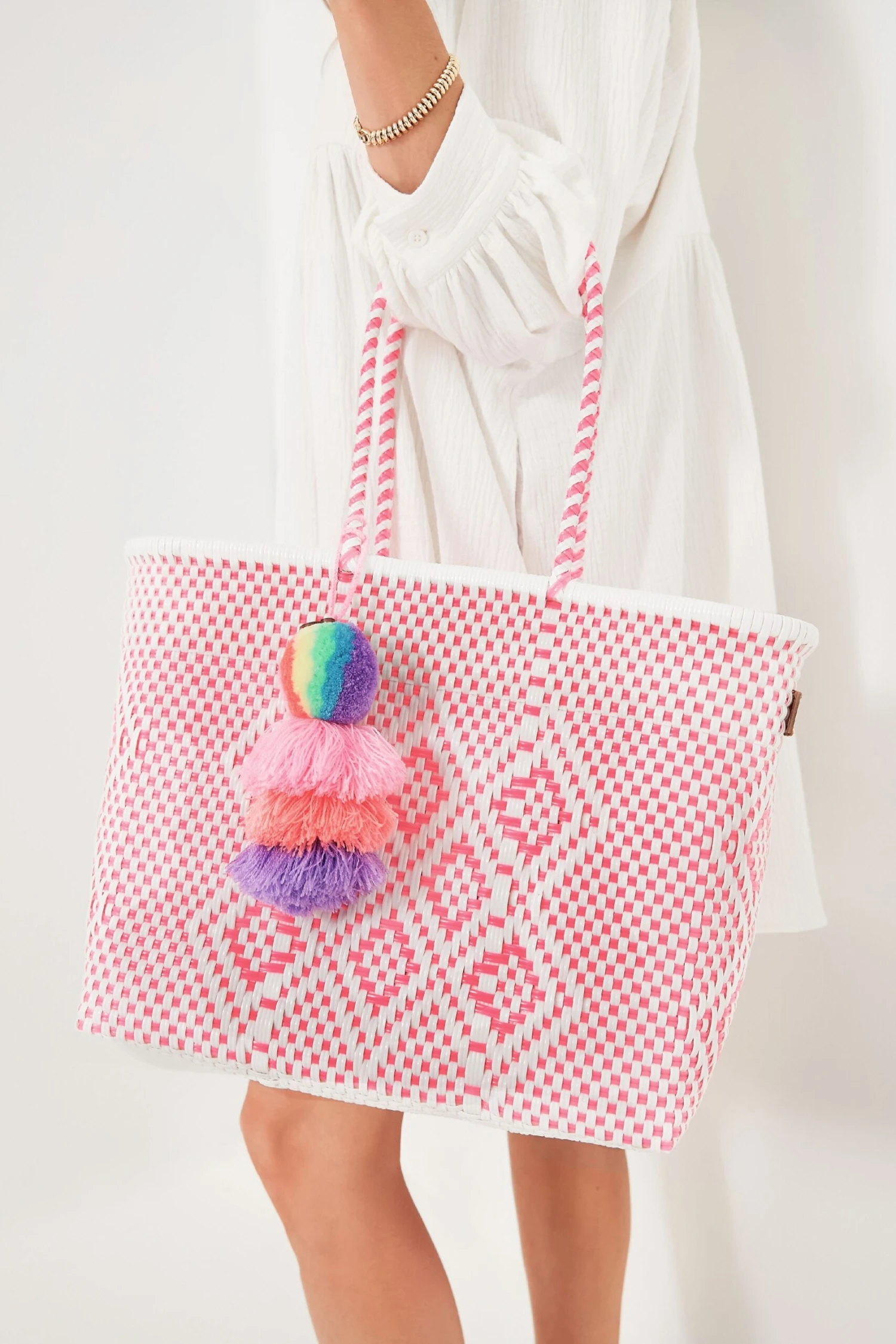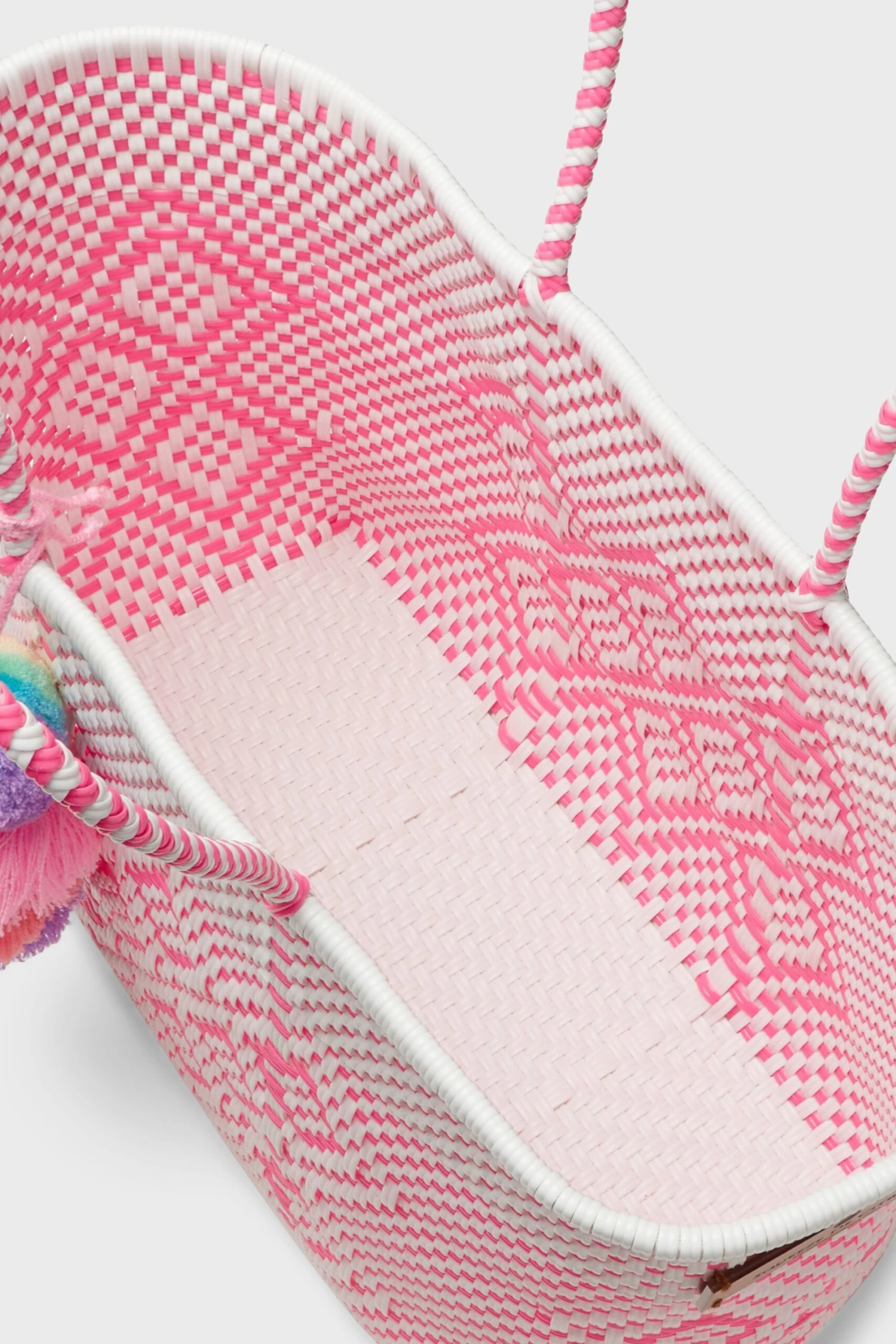 The Neon Pink Cocoles Medium Citron Bag is the definition of true craftsmanship. These totes are ethically made and gracefully sourced by Mexican artisans using Squeeze De Citron’s in house designs. It takes seven to ten days to hand-weave each style from 100% recycled plastic. Not only can you be confident in where your bag comes from, but the feminine and fun pattern and colorful pom are sure to add a joyful touch to your day to day whether you’re headed to the beach or running errands!