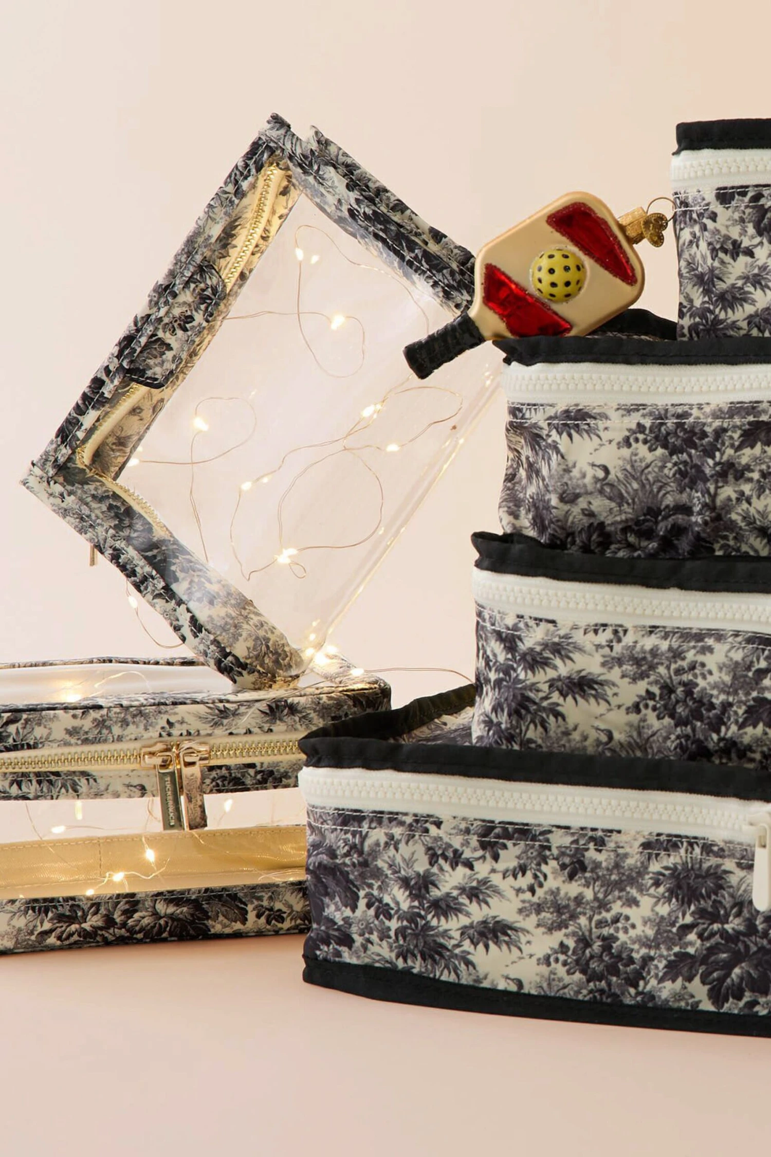 Exclusive to us and boasting our signature Noir Cypress Toile print, this Small Vanity Case is able to hold your beauty essentials and toiletries in style. Whether sitting on your bathroom counter or squeezing into your travel bag, this chic accessory features a spacious interior, zippered closure, and a durable PVC material ensuring easy maintenance. Great as a gift or a treat yourself purchase, this case is ready to come along with you on weekend getaways and longer trips alike.