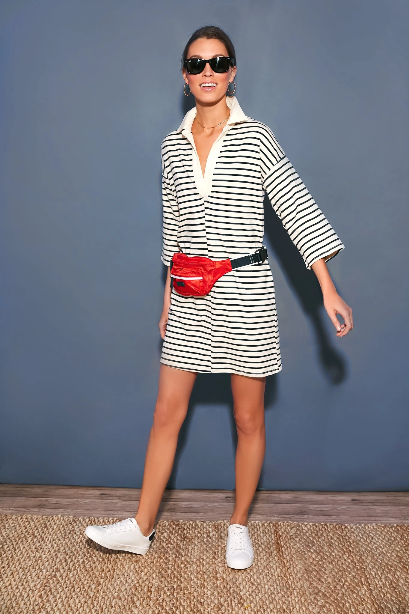 On the go and on trend, the Bebop Red Fold Up Belt Bag has delightful details like striped webbing and two zip pockets for your essentials that make this belt bag a functional way to add brightness to your look. Once youâre packed and ready, use the adjustable buckle strap to wear the pack around the waist or across the body for hands-free adventures. When its work is done, fold it flat and zip it neatly into a wallet-sized pouch.