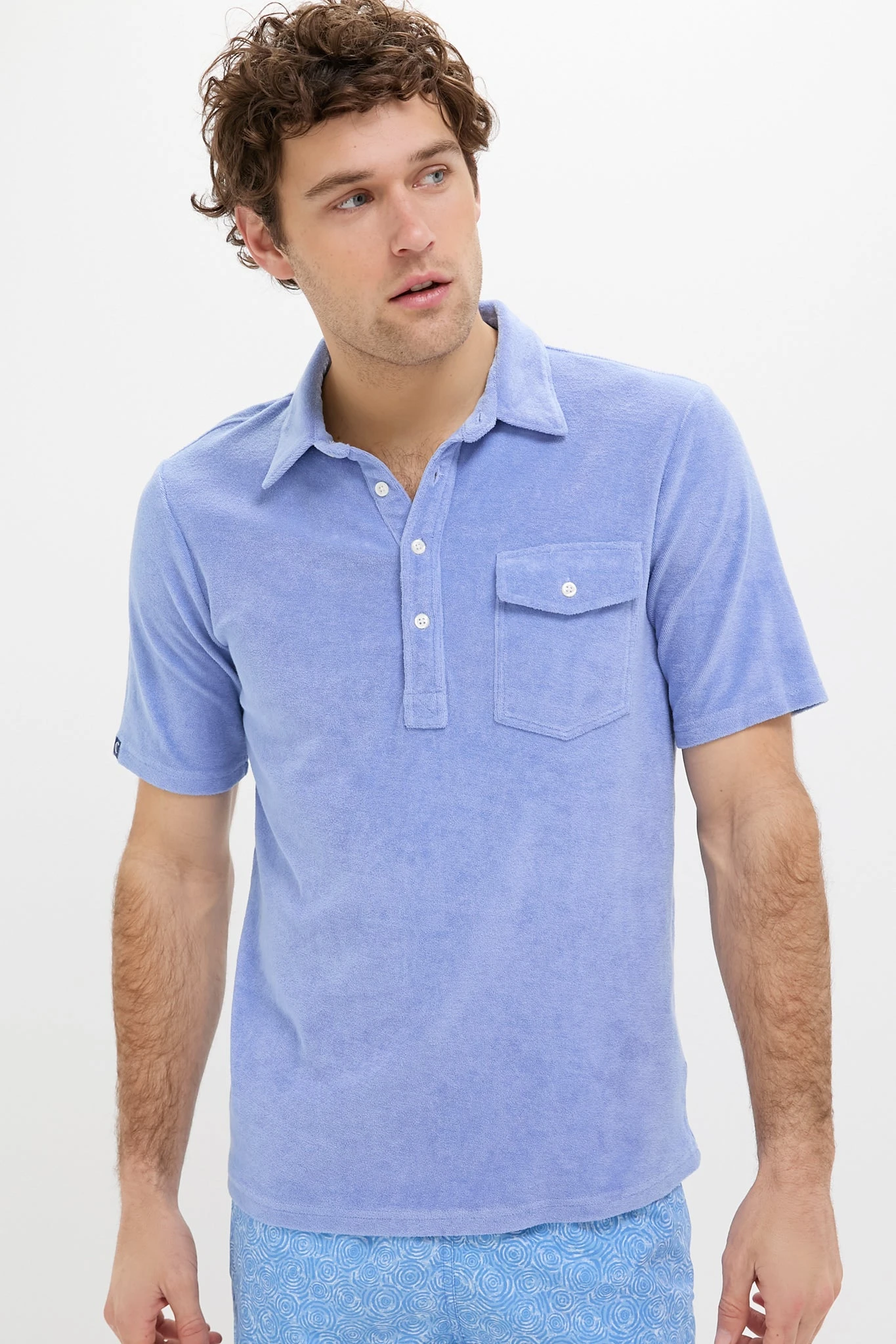 The Perry Winkle Terrycloth Players Shirt features a 4-button placket, a flap pocket, and removable collar stays. It pairs well with shorts or denim for any adventure — we just know you’ll want to wear this style everyday from now on.