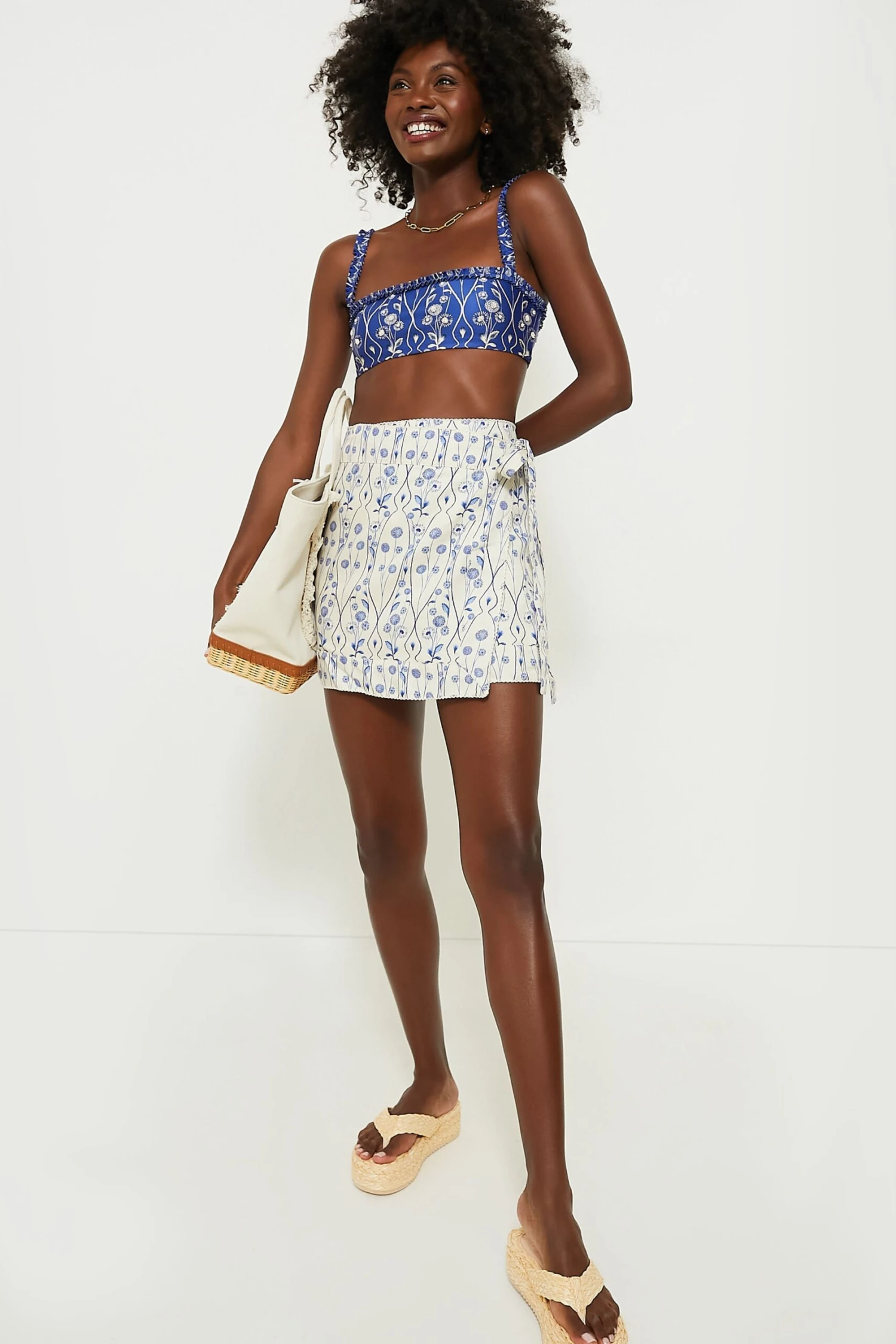 Soak up the sun in the Petalo Luna Mini Pareo, with a delicate tie fastening at the waist and chic blue and white pattern. Pair it with the Petalo Olmo Bikini for the beach, and change into a white tank and sandals for the bar!