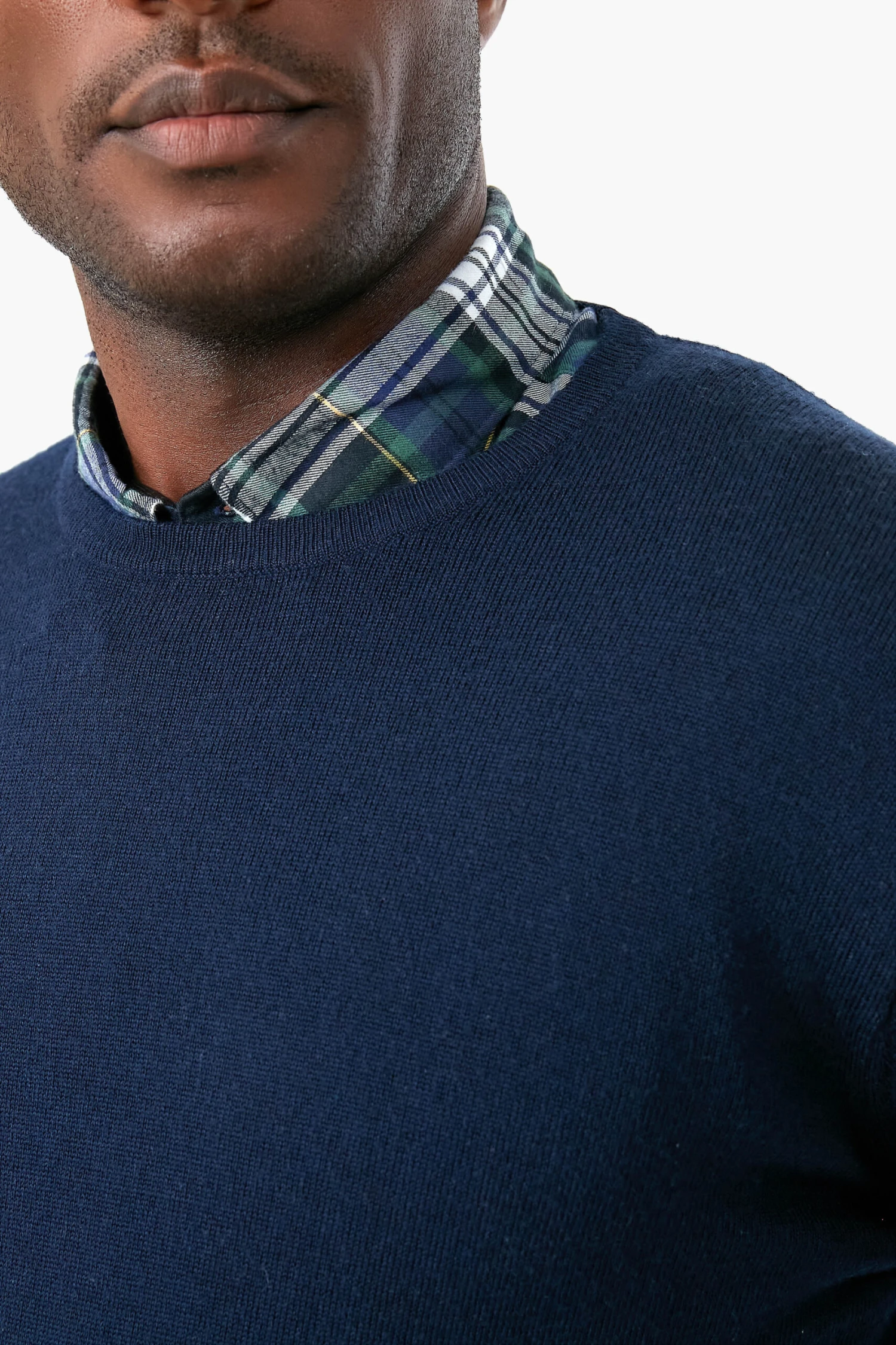 Strike a sophisticated layered look in this stylishly versatile Navy Crown Soft Crew sweater. Crafted from a luxurious merino wool-silk blend, this top offers a luxuriously soft feel and enhanced shape retention. Finished with rib-knit cuffs and hem in a classic fit, this piece is the ultimate fall to winter classic.