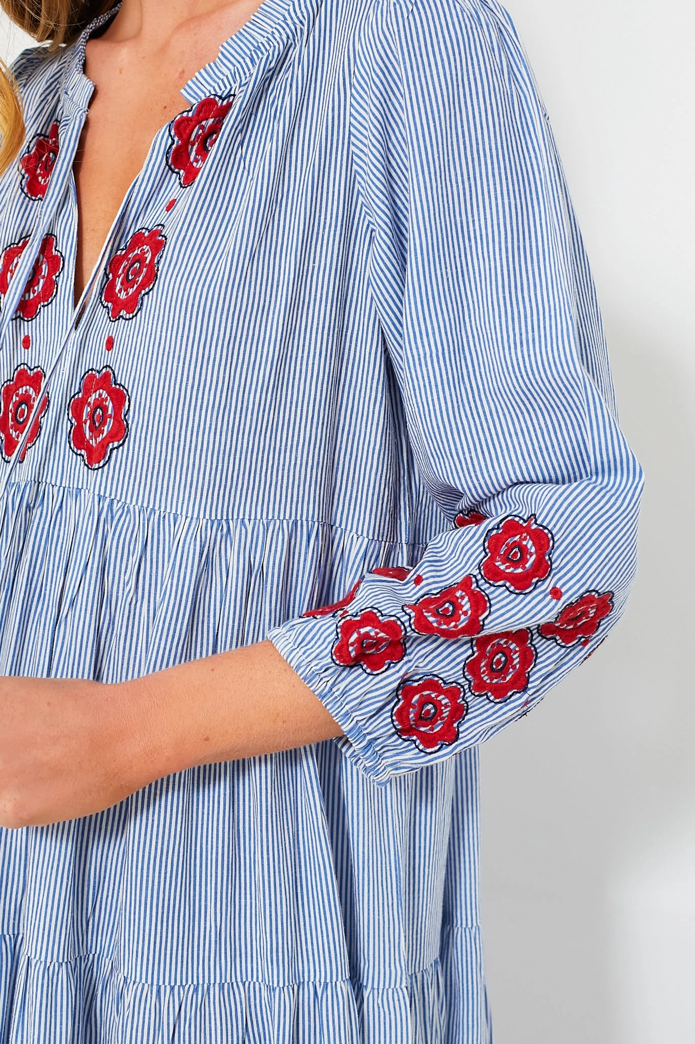 The Poppy Stripe Long Sleeve Salty Paloma Caftan is effortlessly elevated — and perfect for warm weather escapes and weekend getaways. With a ruffled collar and tassel ties that embody bohemian style, as well as a light and breezy feel, this is the piece you will want to throw on in the morning and keep on all day, zero thought required. Pair with sandals and sunnies for poolside sips, or with boots and gold hoops to dress it up for dinnertime.