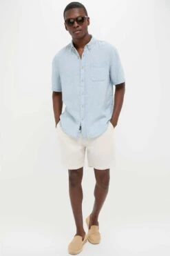 Indigo Basketweave Short Sleeve Palma Linen Shirt
