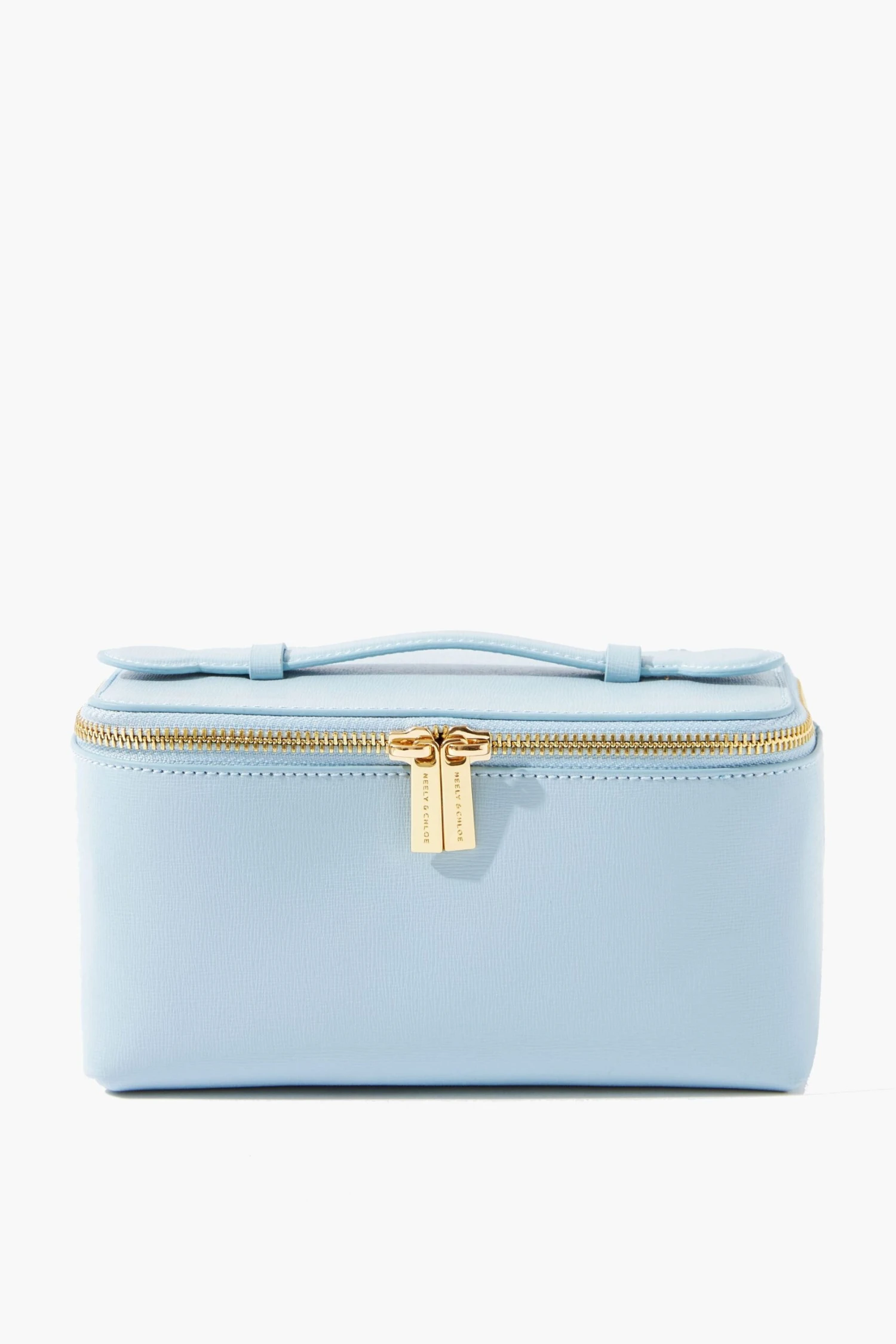 With a little more structure than your typical cosmetic case, the Saffiano Small Vanity is able to hold your beauty essentials and toiletries in style. Whether sitting on your bathroom counter or squeezing into your travel bag, this perfectly-sized holder features a top handle, a zippered closure, and a durable leather construction in an ice blue hue you are sure to love. Great as a gift or a treat yourself purchase, this thing is about to come along with you on weekend getaways and longer trips alike.
