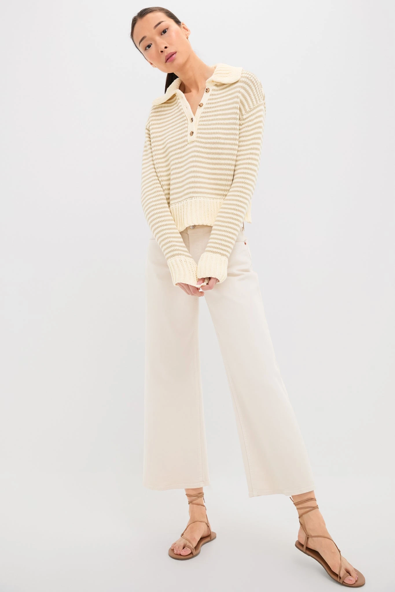 The Striped Doro Henley Sweater is a chic collared pullover with a partial front button placket and on-trend striped design. Perfect for throwing on over your shoulders with a linen dress or wearing with jeans and ballet flats, this is sure to be a well-loved item in your wardrobe.