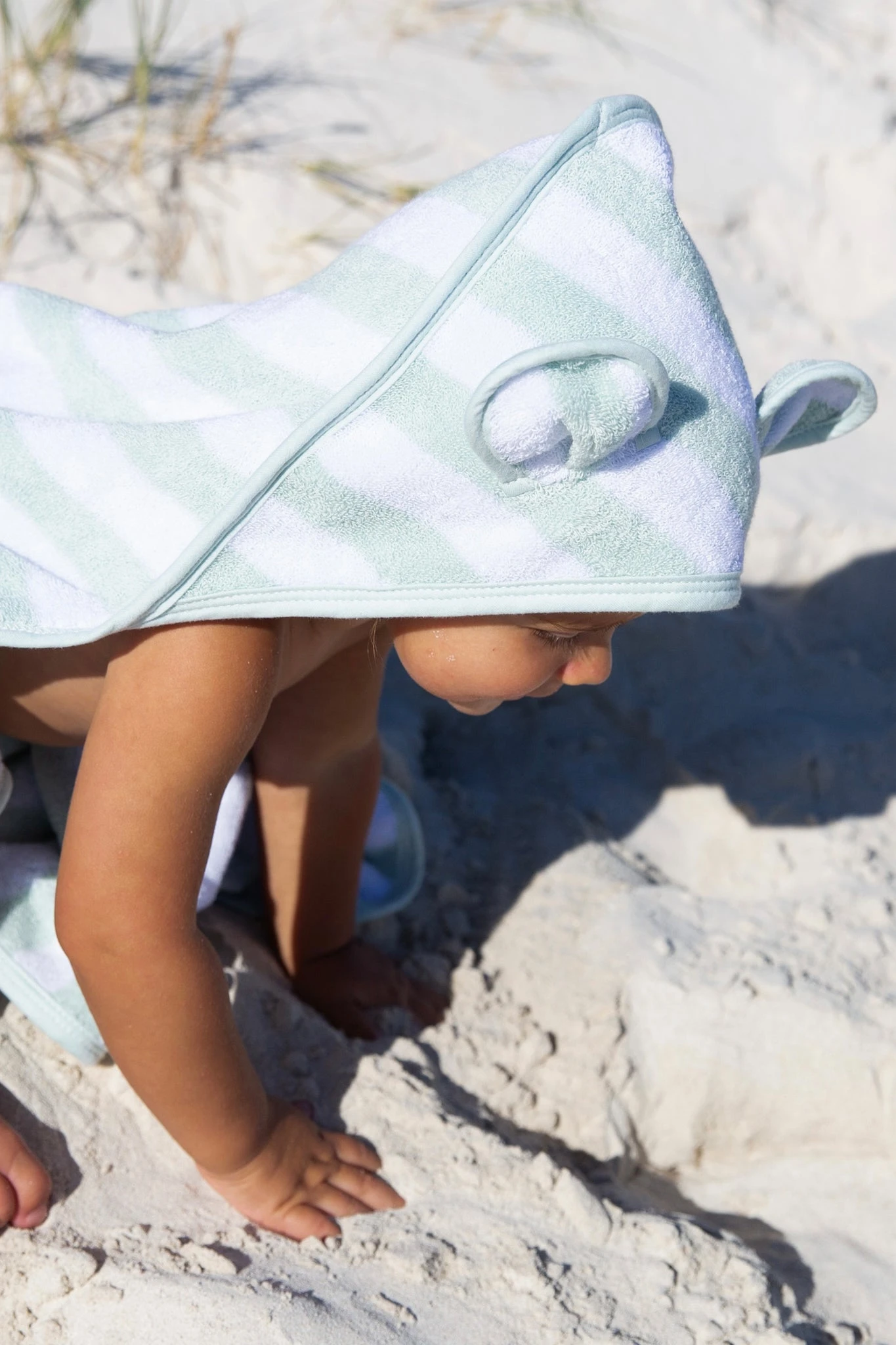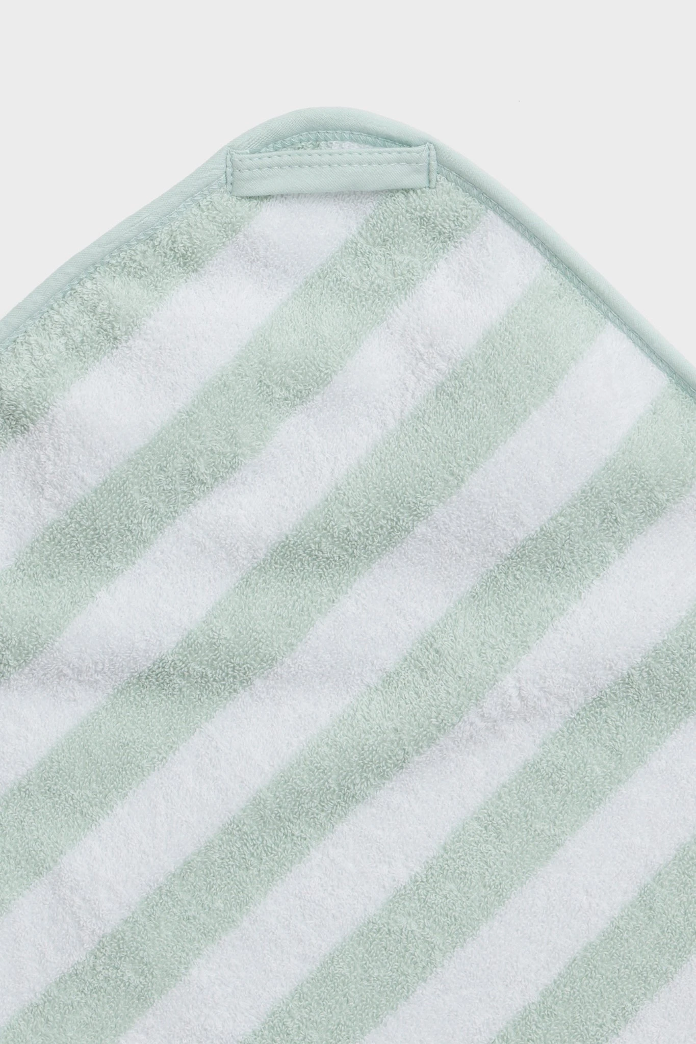 Let your little one get cozy in the Pastel Green Stripe Baby Critter Towel Wrap. Crafted for the smallest members of the family from 100% combed cotton. Experience the best of summer with its adorable 3D animal shaped ears and pale green and cream maxi stripe print.