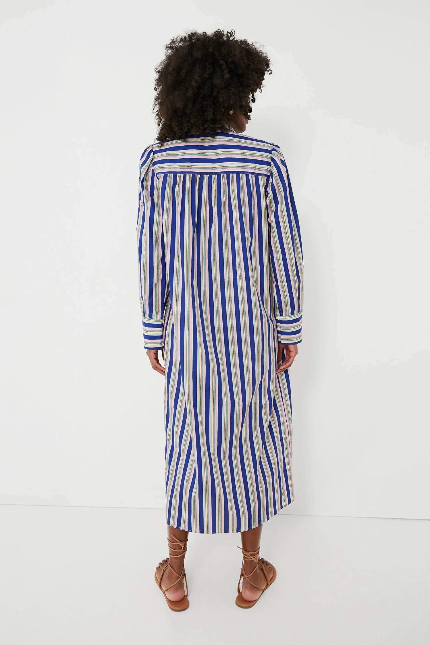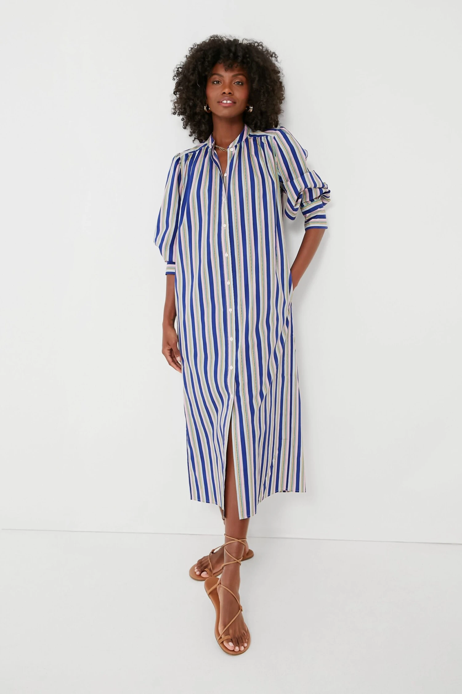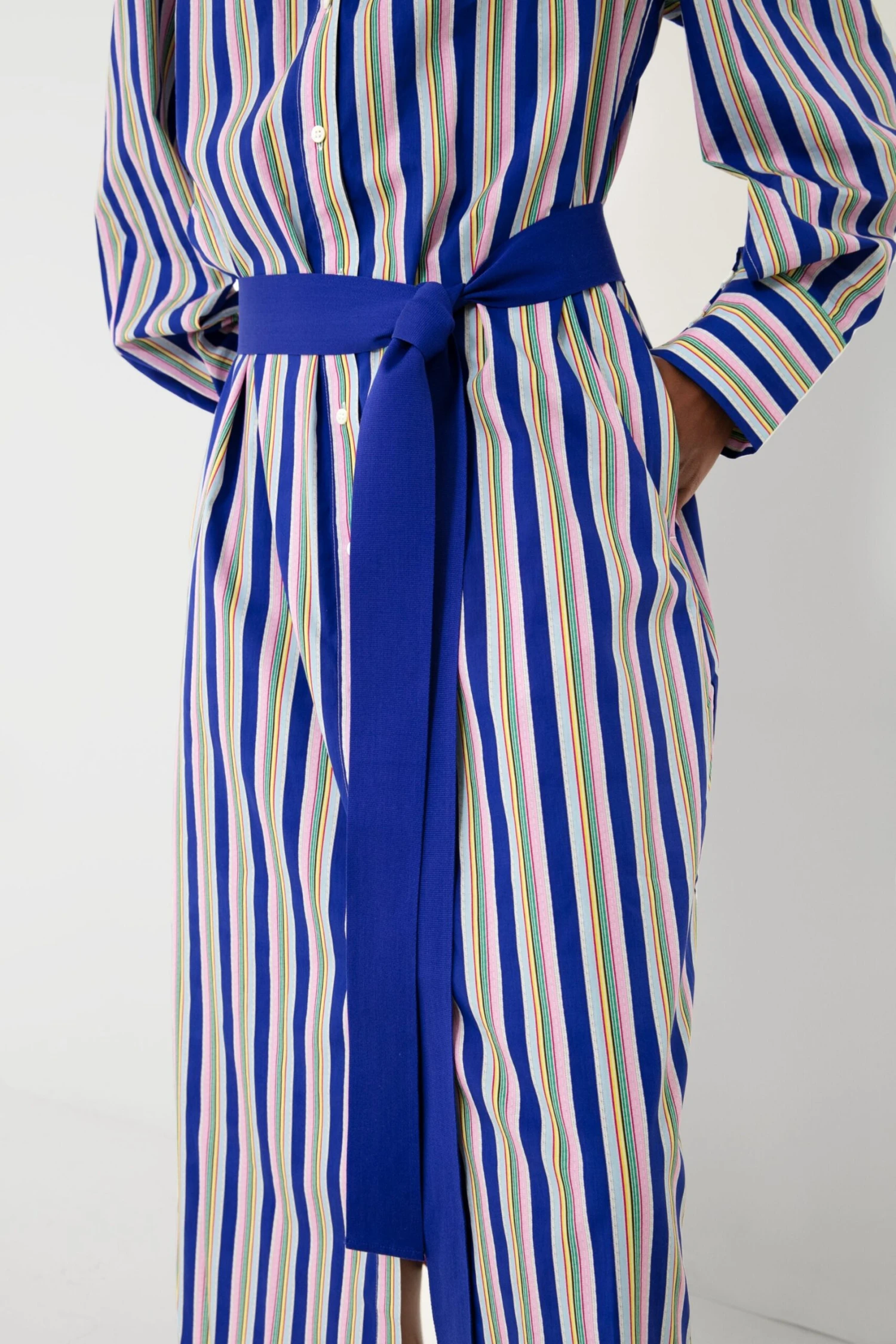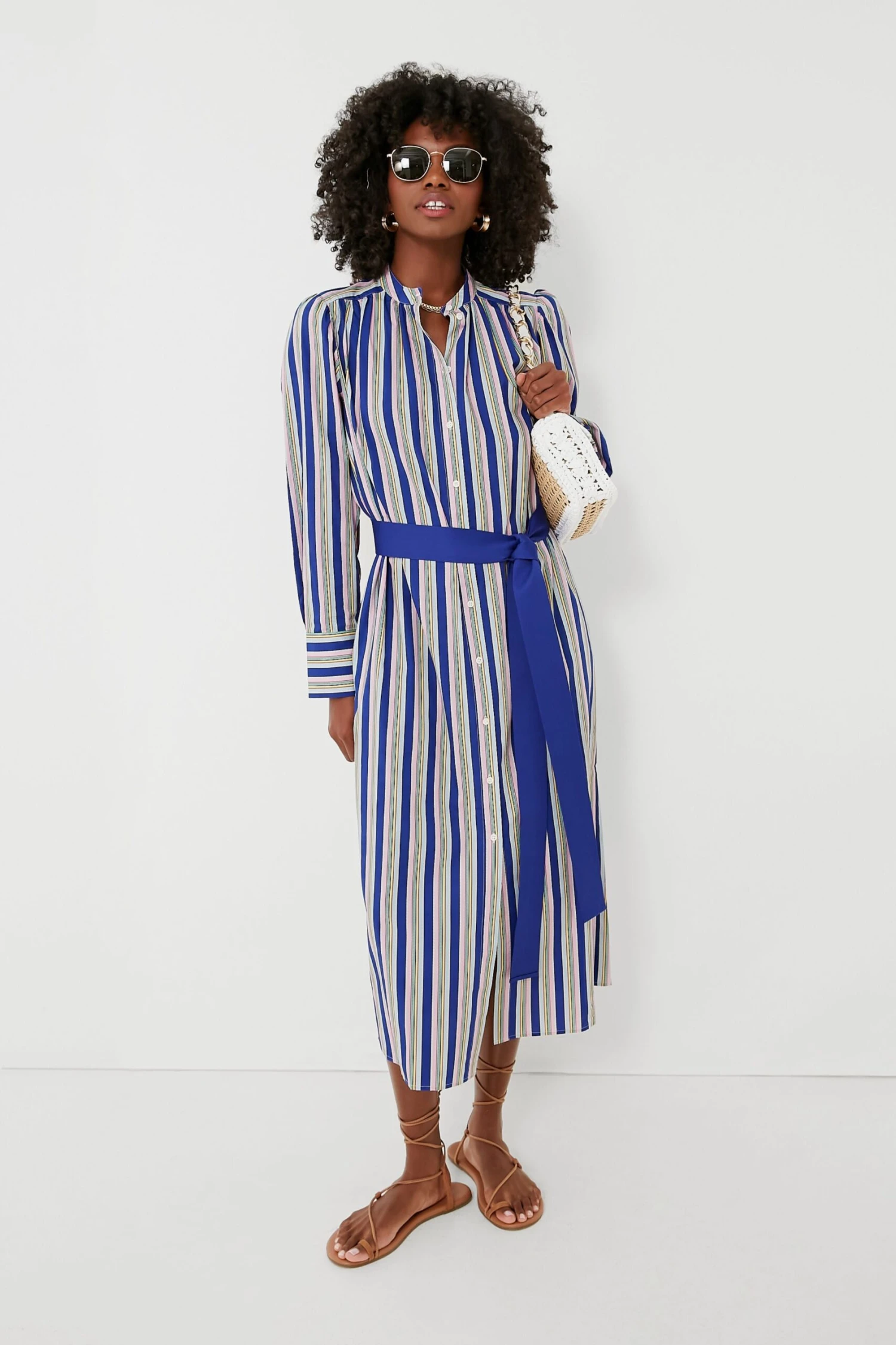 Versatile and ready for day-to-night wear, the Swedish Blue Positano Shirt Dress is a relaxed-fitting silhouette featuring fresh stripes printed on crisp cotton poplin. In an on-trend midi length, this chic number features a full button down placket, side seam pockets, and an optional cobalt self-tie belt that allows you to add definition and shape. Perfect for styling in a number of ways, this stunner can be worn loose with strappy sandals and a tote for everyday, or belted with wedges and a gold jewelry for a sunset dinner party.