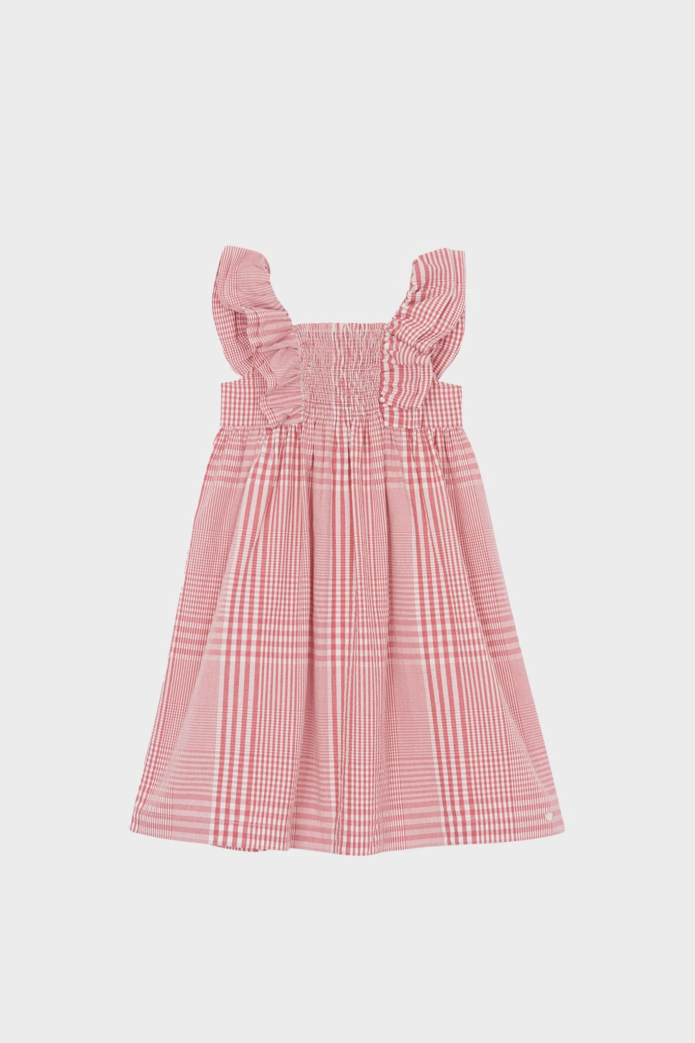 The Red Smocked Sleeveless Dress is distinguished by its summer charm and lightness. With a red check, ruffled sleeves, and smocked bodice, this dress is ideal for sunny days and brings an elegant and timeless touch to your little ones wardrobe.