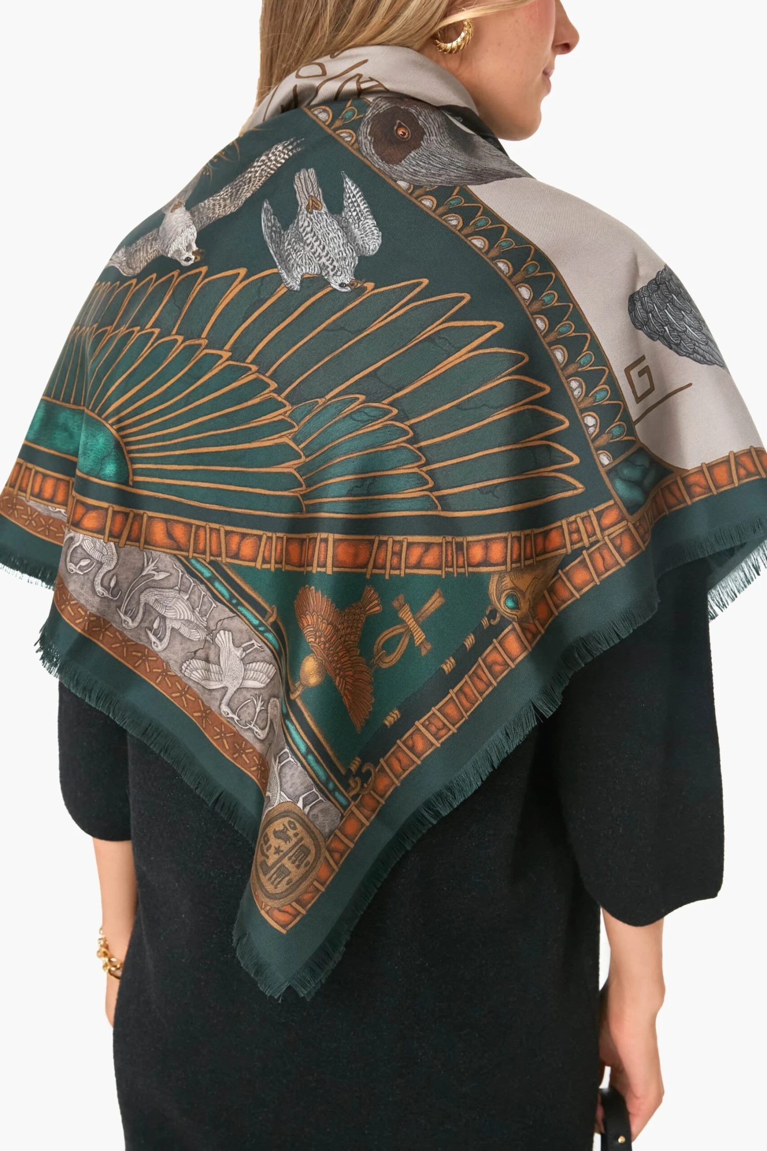 The Harolds of Horus Silk Scarf is the must have accessory for your fall wardrobe. Featuring an egyptian motif with frayed edges, this piece can be styled multiple ways for an effortlessly elegant look. Throw over a dress for cocktails with friends or layer under a luxe coat for chilly days- either way you will stay cozy in style.