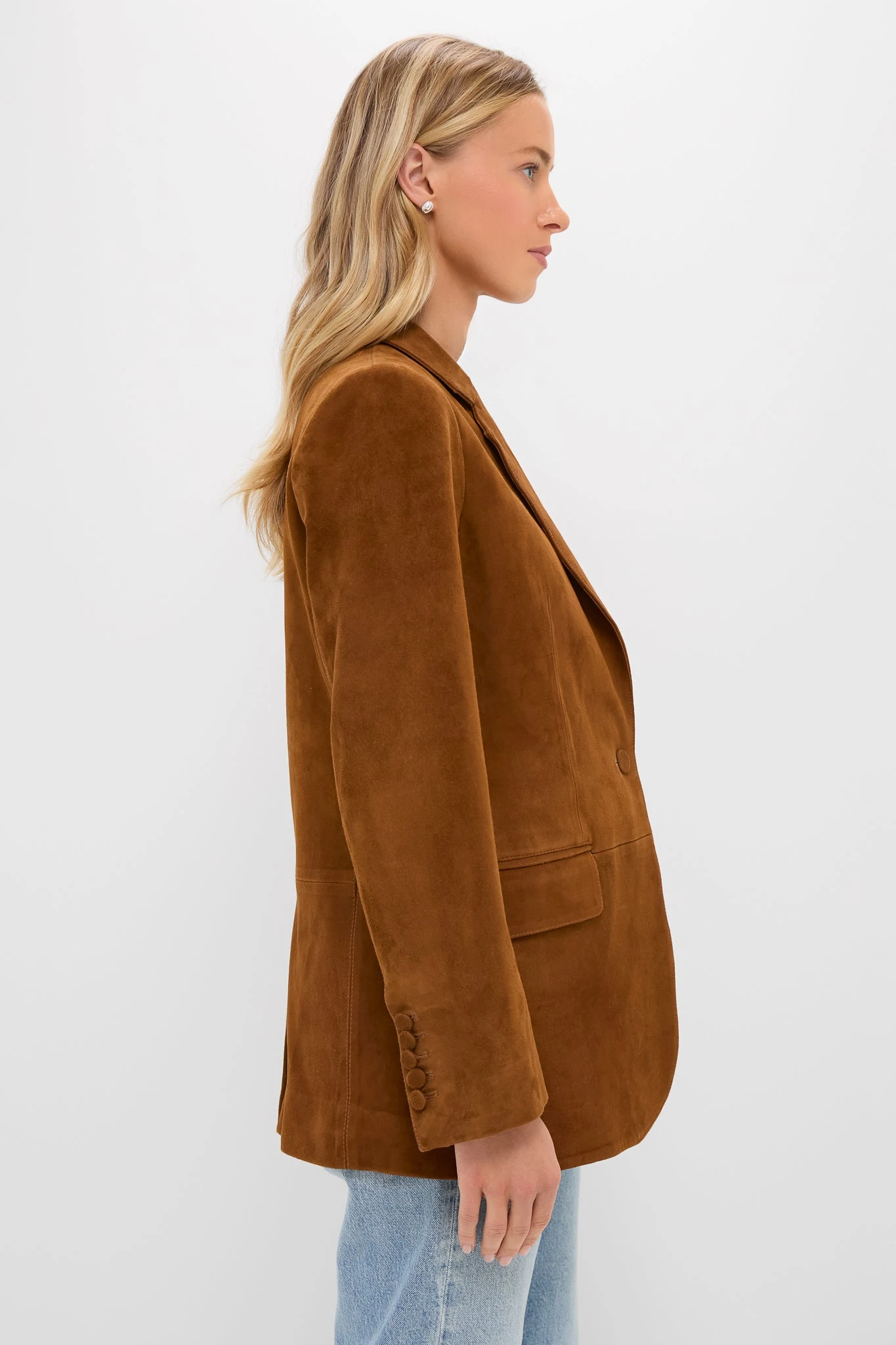 Crafted from luxe suede in a rich toffee hue, the Leo Blazer brings effortless sophistication with a modern, tailored silhouette. Perfect for layering over dresses or pairing with trousers and denim, it’s a versatile statement piece that transitions seamlessly from day to night.