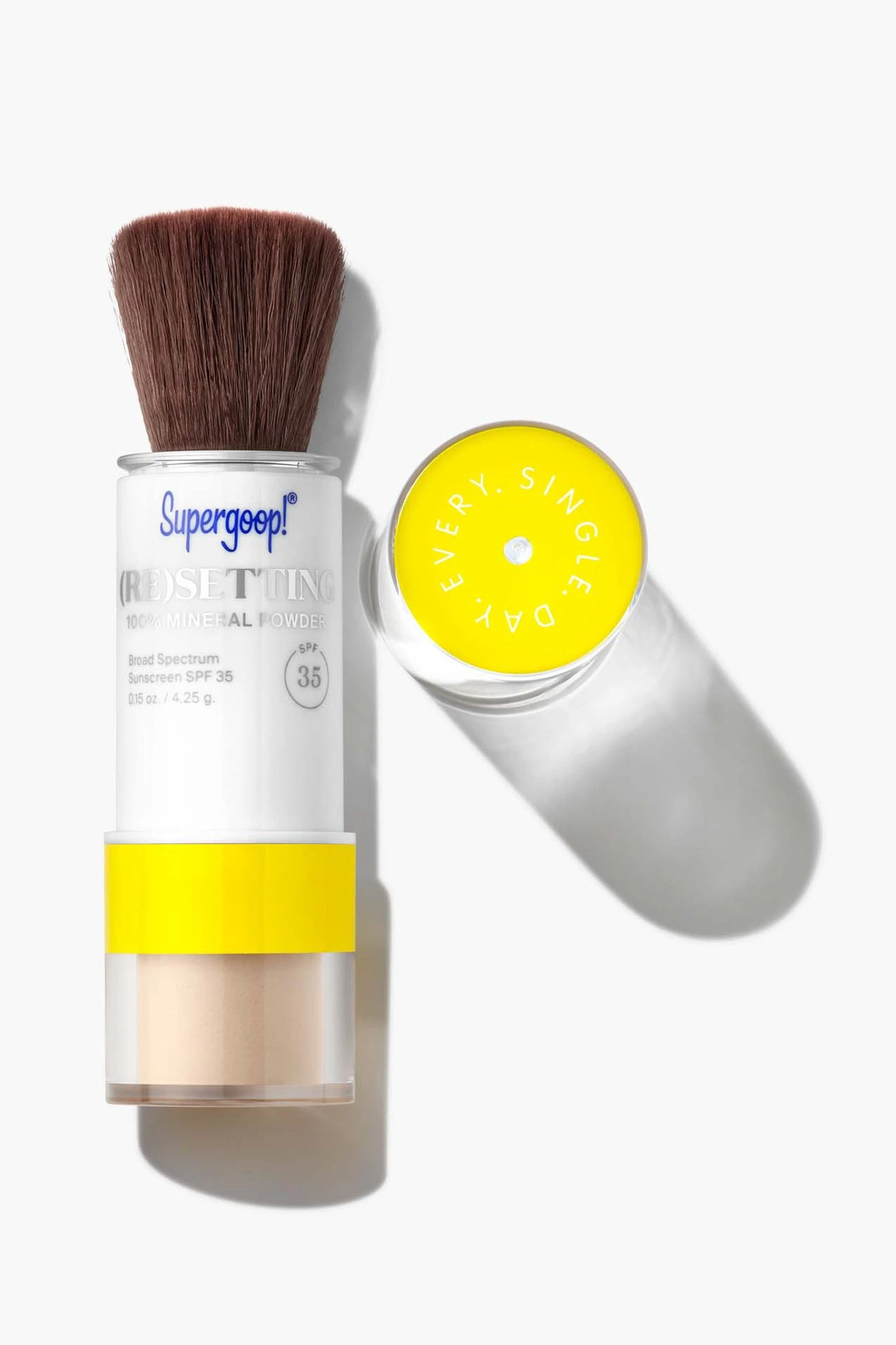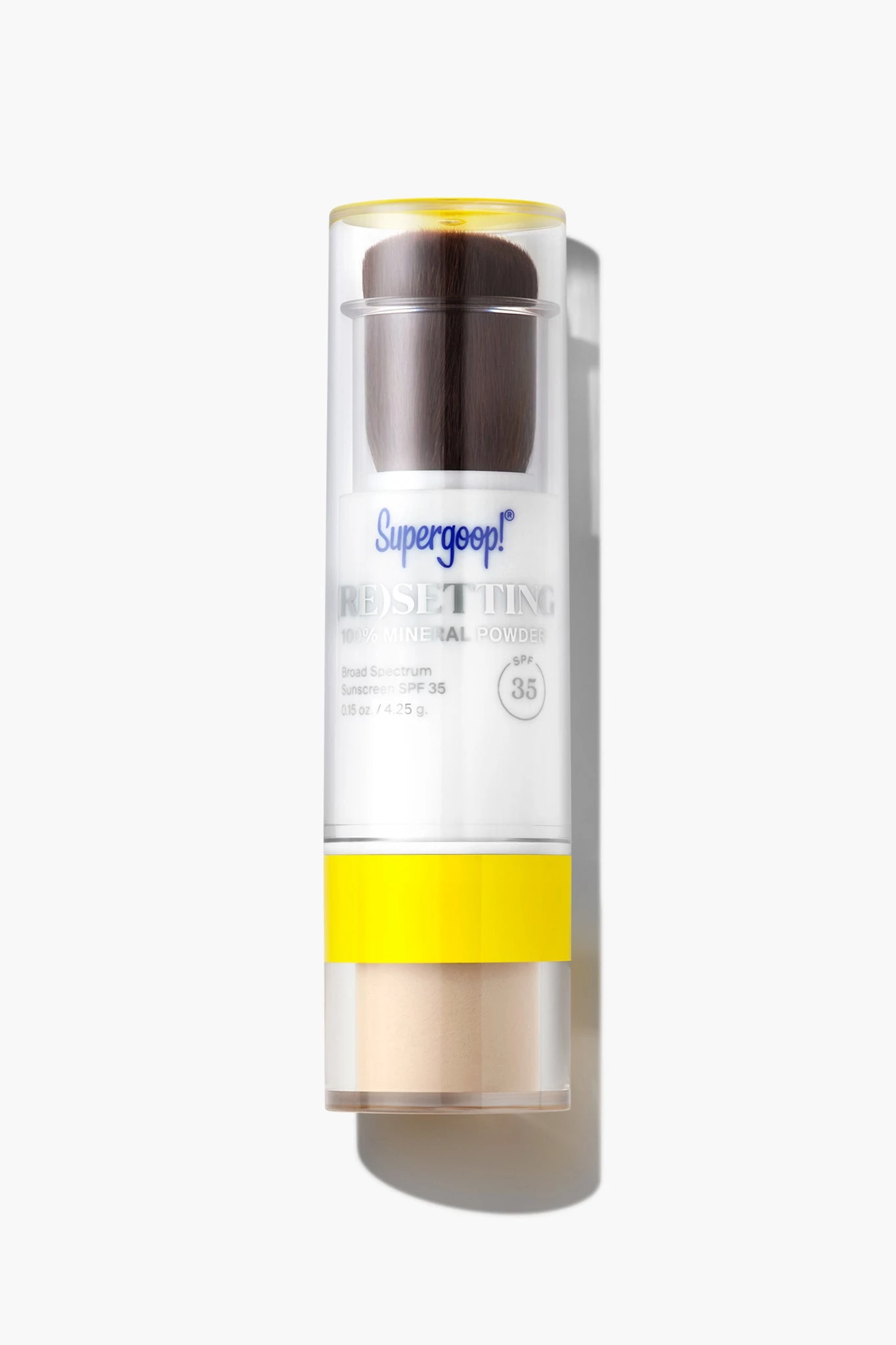 Complete your look with the Translucent (Re)setting 100% Mineral Powder with 35 SPF that sets makeup and mattifies skin. Perfect for all skin types, this formula smooths skinâs appearance and reduces shine. Pack in your beach bag, go-to tote, or purse and brush on throughout the day to reapply.