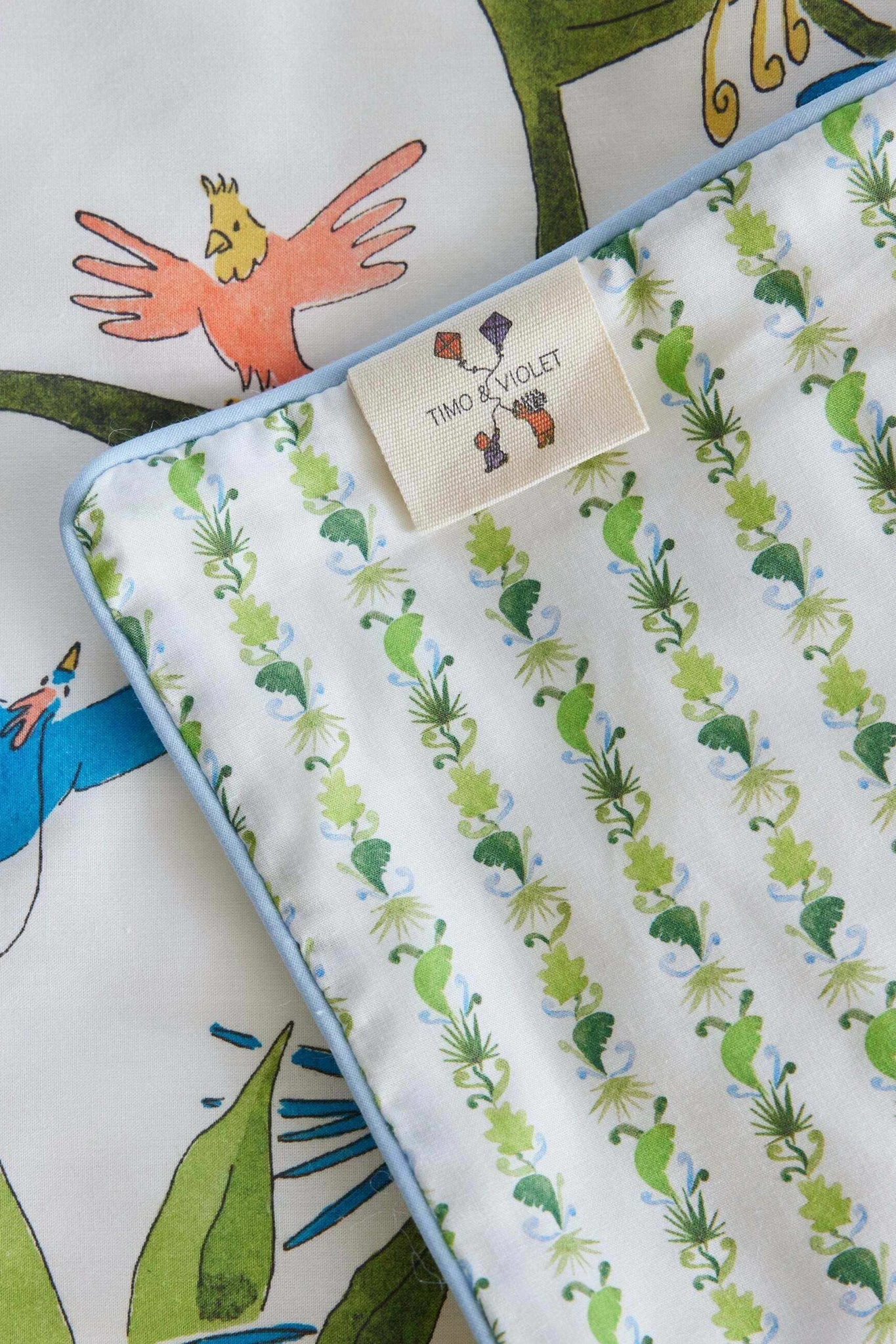 Dreamy prints meet soft, cooling fabric with the Tropical Placement Reversible Crib Quilt. Featuring an adorable print, this blanket is silky soft, lightweight and breathable, making it appropriate for any time of the year. Pair them with coordinating Tropical Placement Crib Sheets for a charming and cohesive look.