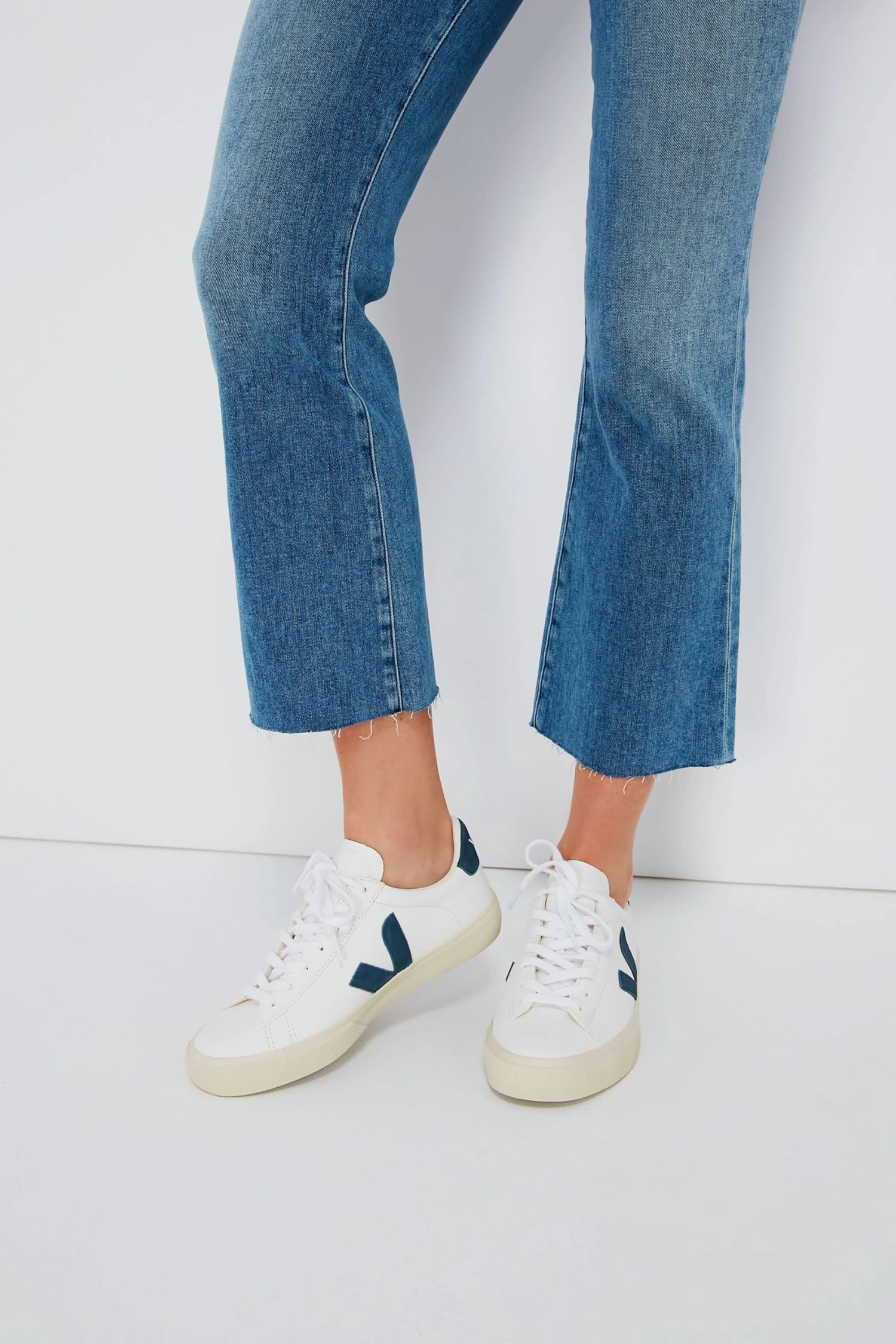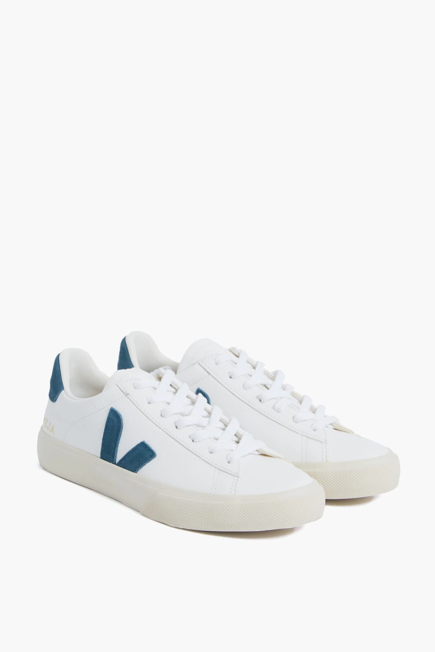 The Extra-White California Campo Sneakers update the brand’s usual clean-lined minimalism with a fun splash of color. With a contrasting peacock blue logo patch and heel, these are a fun twist on the classic white sneaker. This slightly sportier silhouette is easy to style with anything from minis to midis, and leggings to denim. We love to wear them for all occasions, from a quick coffee run to exploring a new city.