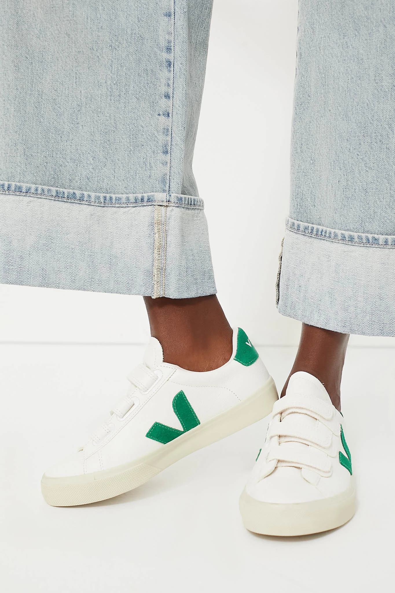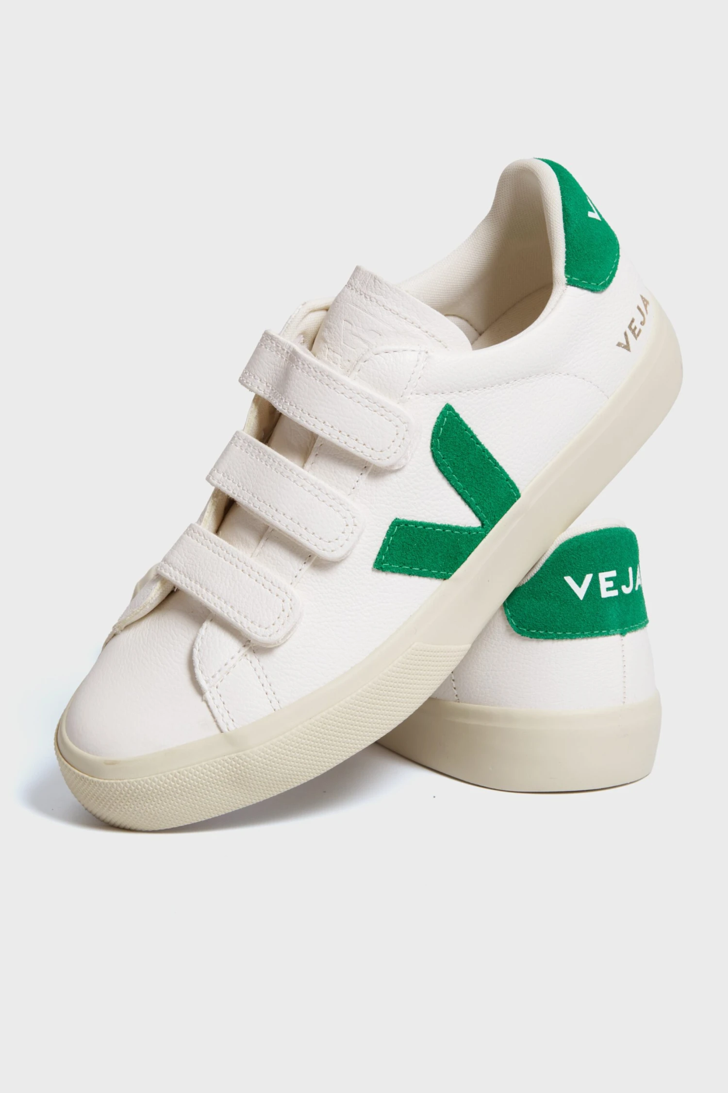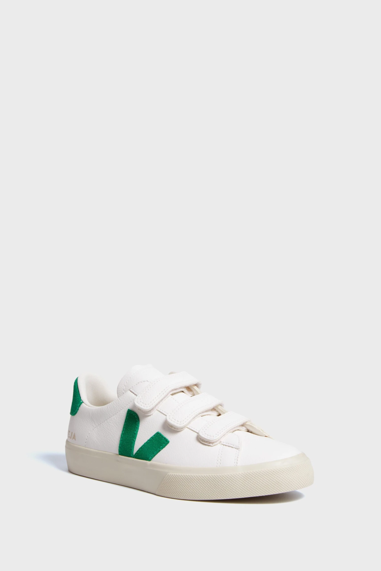 The Extra White Emeraude Recife Sneakers bring a slight variation to the classic white shoe. A bright green logo patch add some color contrast, while the 3-strap velcro fastening makes for a fun and playful look that is sure to stand out in your wardrobe. Wear them from the farmers’ market to dinner and drinks and everywhere in between — we love to pair them with our favorite denim and with effortless day dresses for a look that can go anywhere.