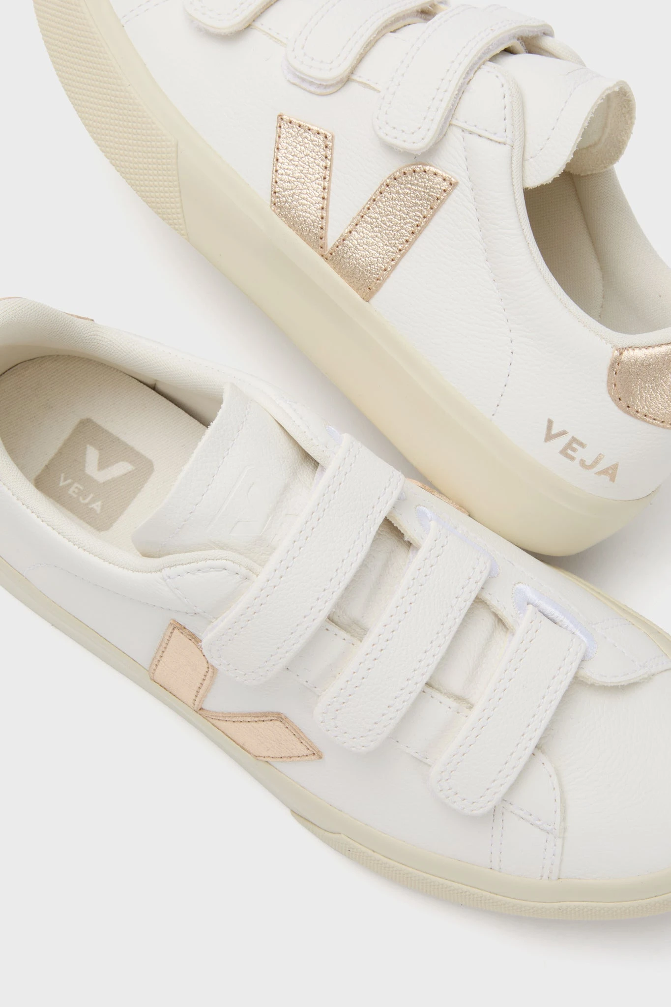 The Extra White Platine Recife Logo Sneakers add a slight variation to the classic white shoe. A metallic logo patch and heel detail add some shimmer and contrast, while the 3-strap velcro fastening make for a fun and playful look. Wear them from the farmers’ market to dinner and drinks and everywhere in between.