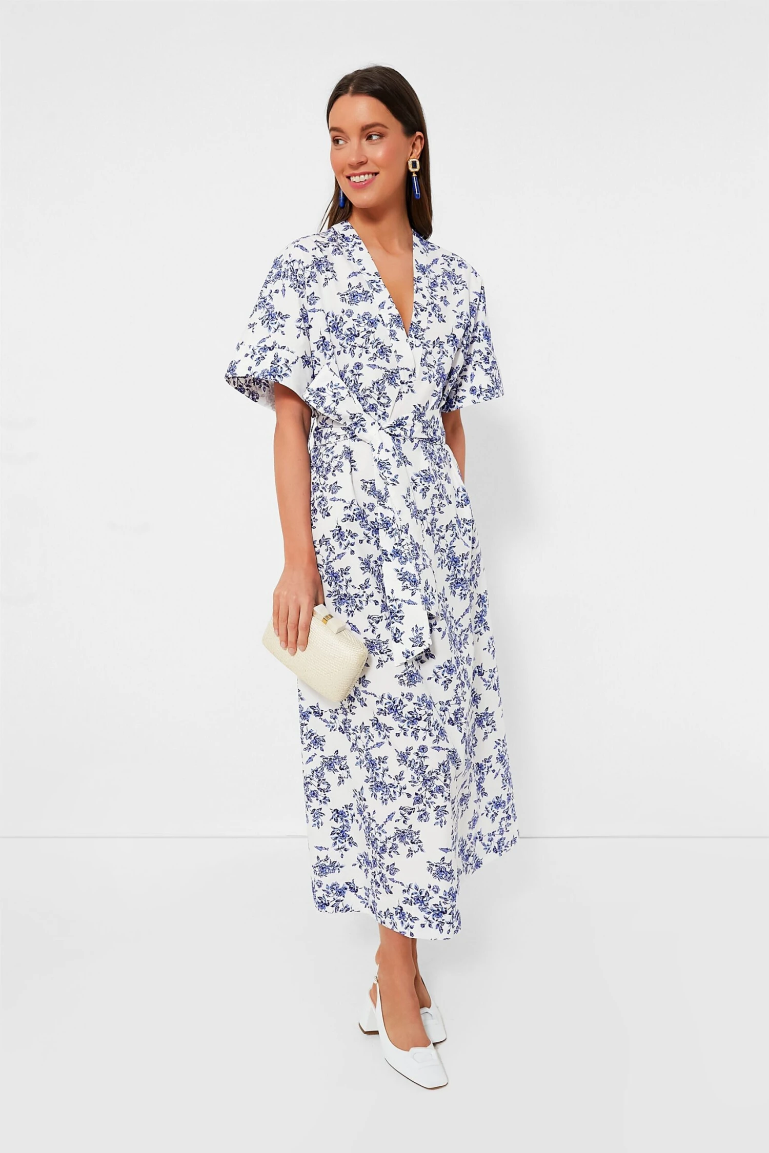 An exquisite piece of sunshiny apparel, the Vintage Rose Blue Ankita California Poplin Dress is a favorite of ours. Made of lightweight cotton, it is adorned with a beautiful blue floral motif and is finished with an elegant V-neckline and a self-tie belt offering a flattering fit. Perfect for oceanside lounging, strolling around the resort, and grabbing a cocktail at the beach bar, this breezy silhouette is full of carefree elegance. Finish with sandals and a sunhat to go casual or wedges and raffia earrings to transition into evening.