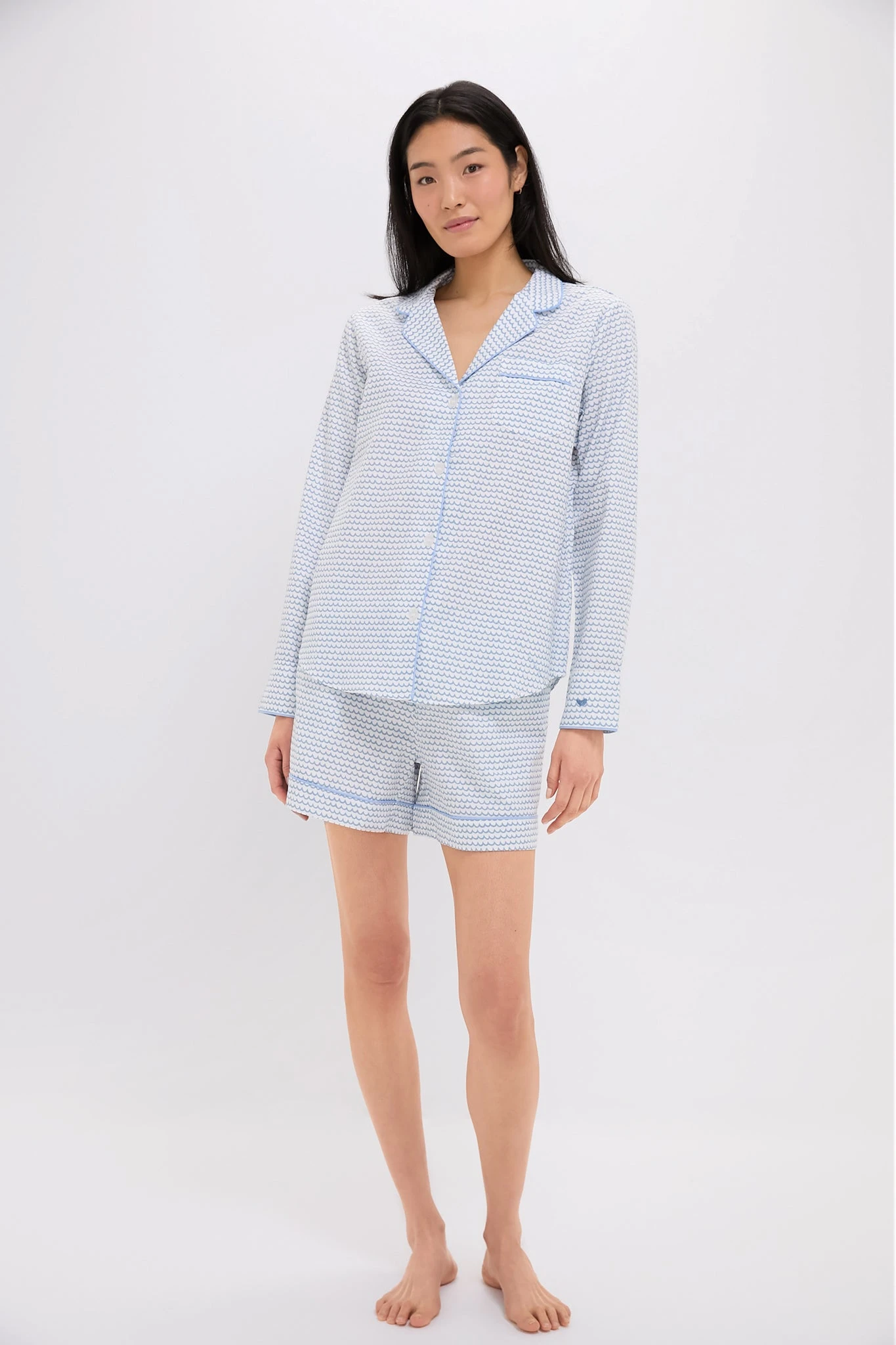 The La Mer Long Sleeve Short Set are adorable and oh-so-classic. These long sleeve pajamas feature a notch collar, front chest pocket, and pattern that reminds us of the ocean. The drawstring shorts allow for perfect fit, and the incredibly soft cotton will make these a sleepwear favorite.