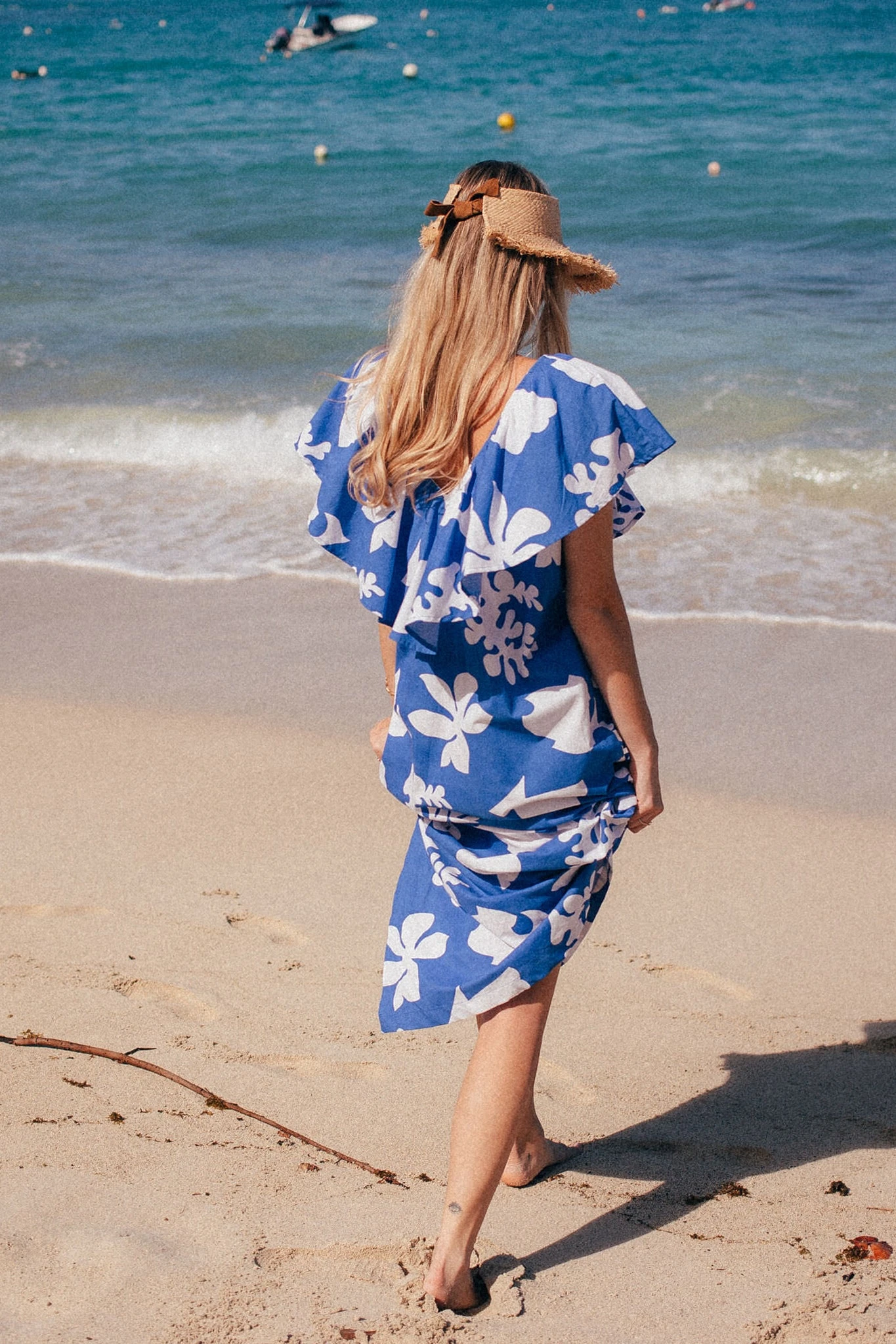 The Natural Maris Visor is made from braided natural raffia. The frayed brim keeps you protected from the sun, while the suede tie detail adds style. Pair with swimwear or a crisp shirt and denim shorts for a chic, beach-ready look.